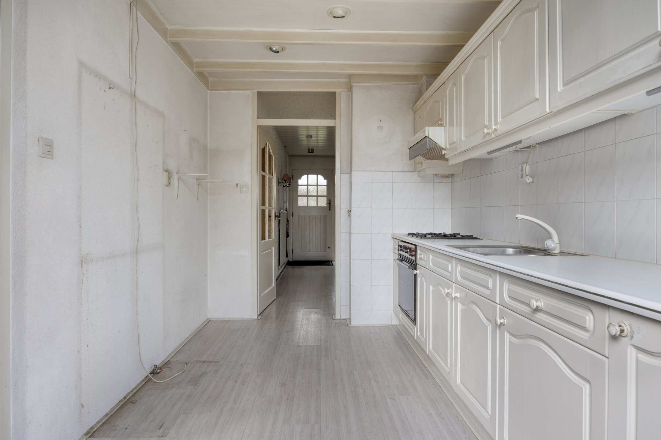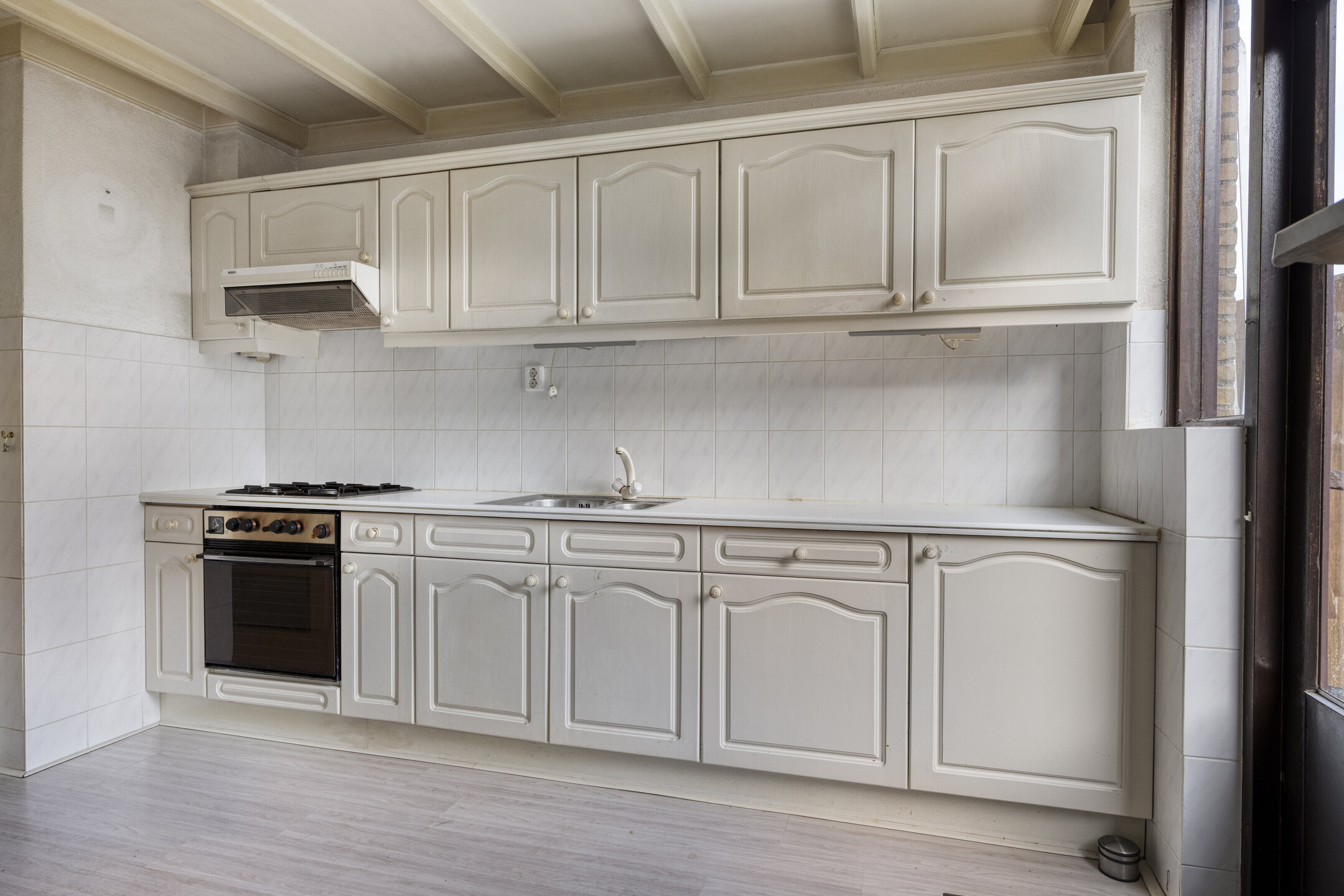 Aan de achterzijde bevindt zich de keuken met toegang tot de tuin. De keuken en het interieur zijn gedateerd, wat volop mogelijkheden biedt om deze geheel naar eigen wens te vernieuwen. De woonkamer en keuken zijn samen maar liefst circa 40m2.