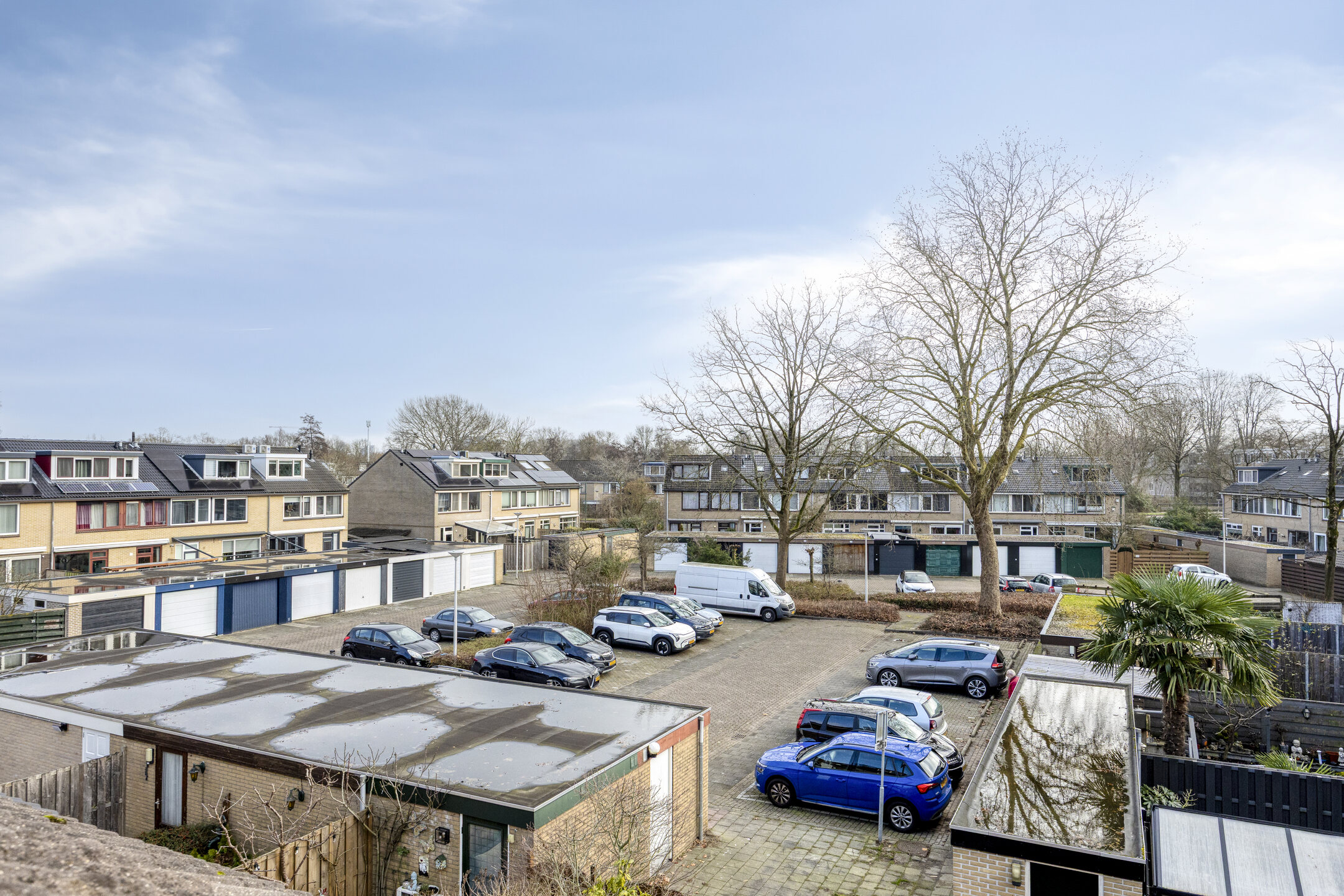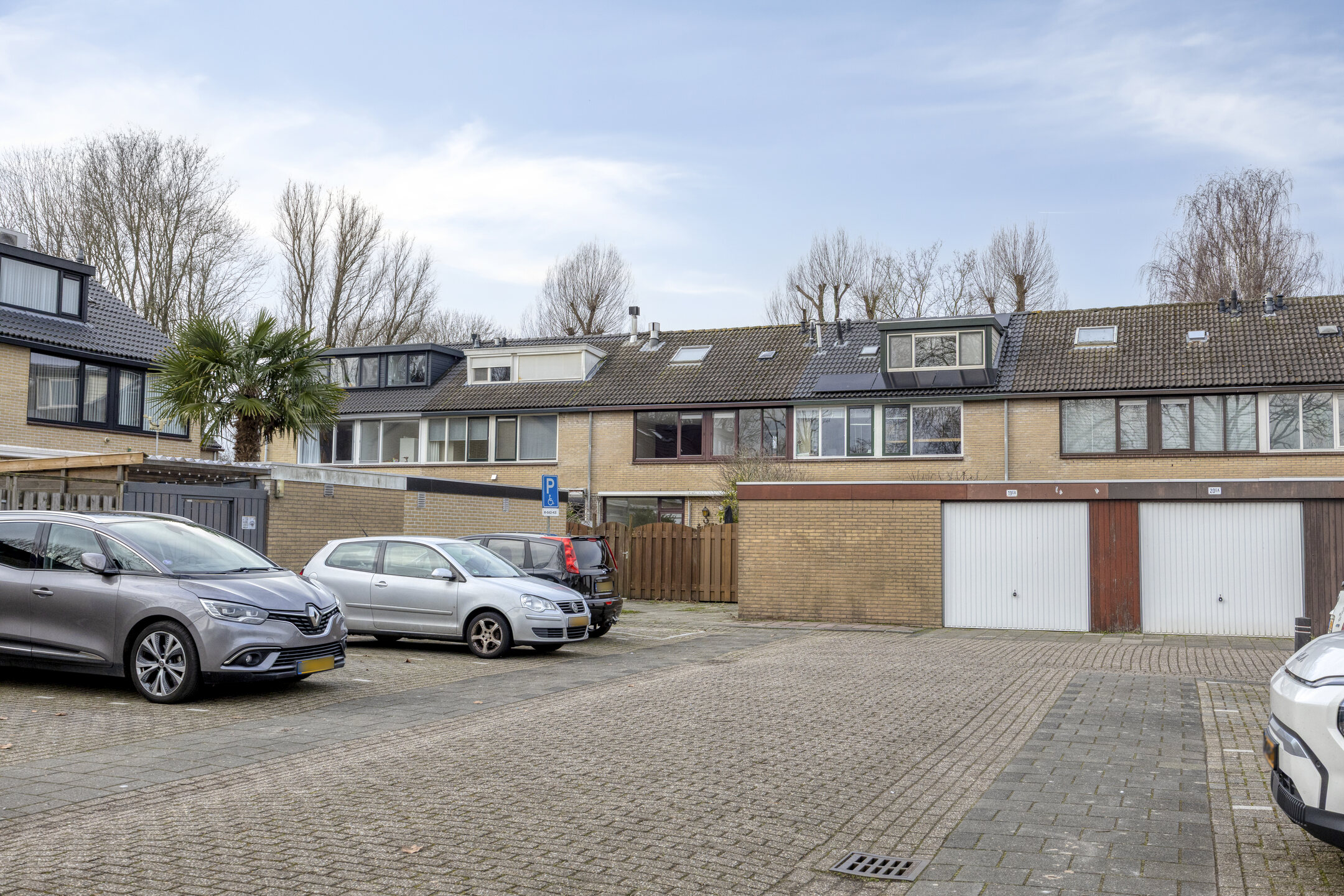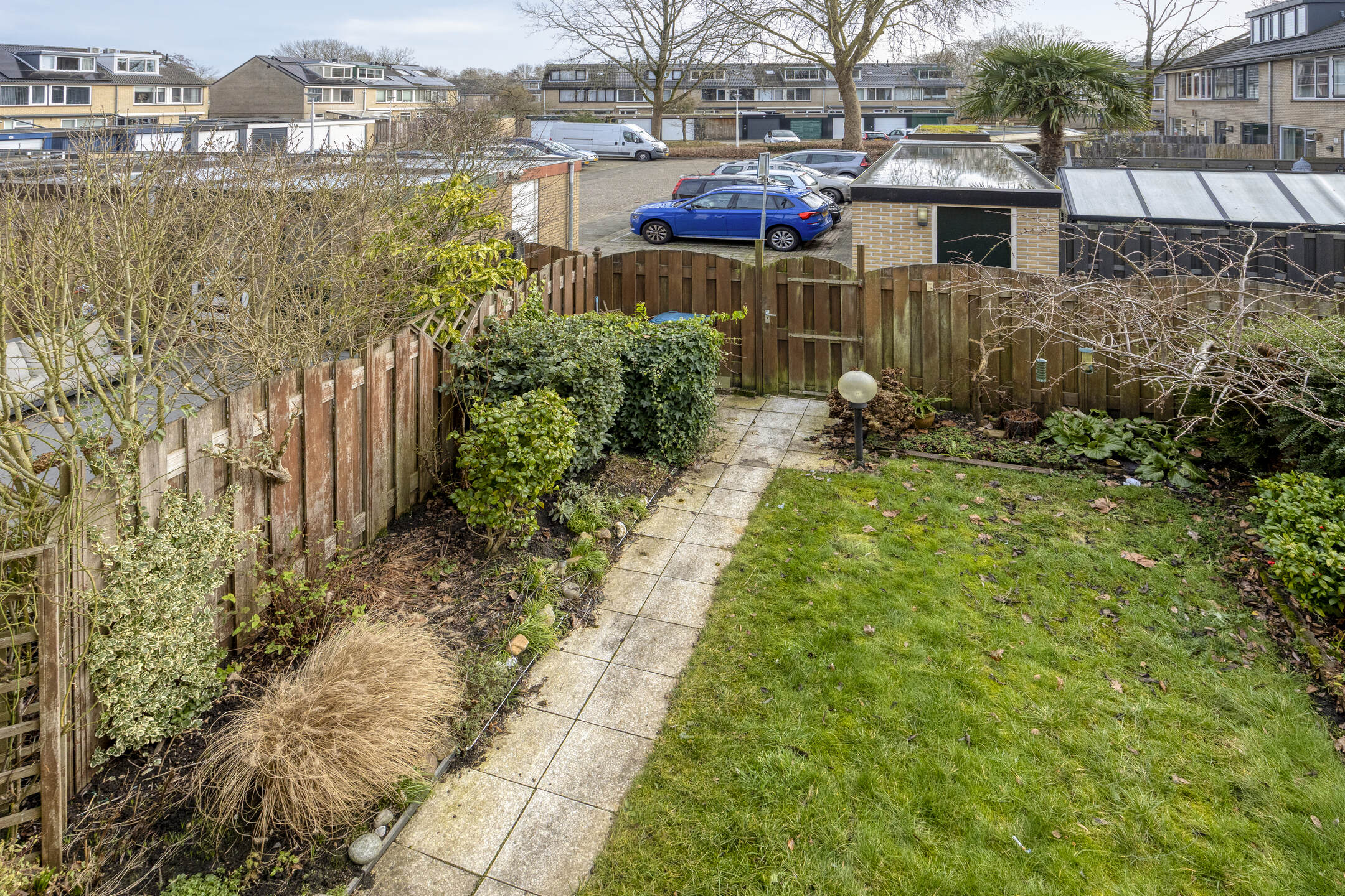 Direct buiten de tuin tref je de berging aan van circa 8,6 m², ideaal voor fietsen, opslag of hobbyruimte. Parkeren kan heel gemakkelijk op het parkeerterrein direct achter de woning.