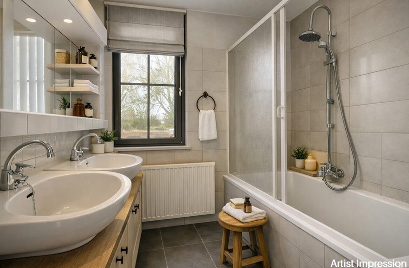 Daarnaast zijn er een badkamer en een aparte toiletruimte aanwezig op de eerste verdieping, waardoor dit huis volop ruimte biedt voor het hele gezin.