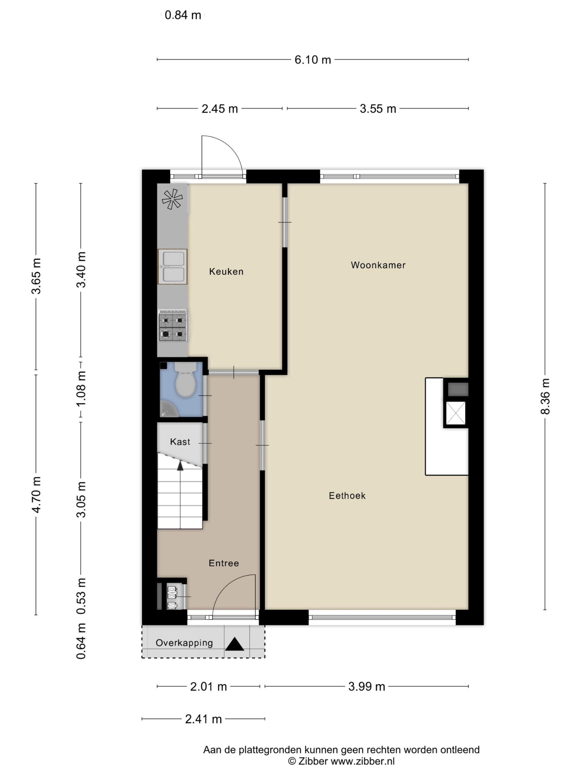 Via de entree kom je in de hal met meterkast, toiletruimte en trapopgang naar de verdieping. De doorzonwoonkamer is ruim opgezet en profiteert van veel lichtinval dankzij de grote raampartijen aan voor- en achterzijde.