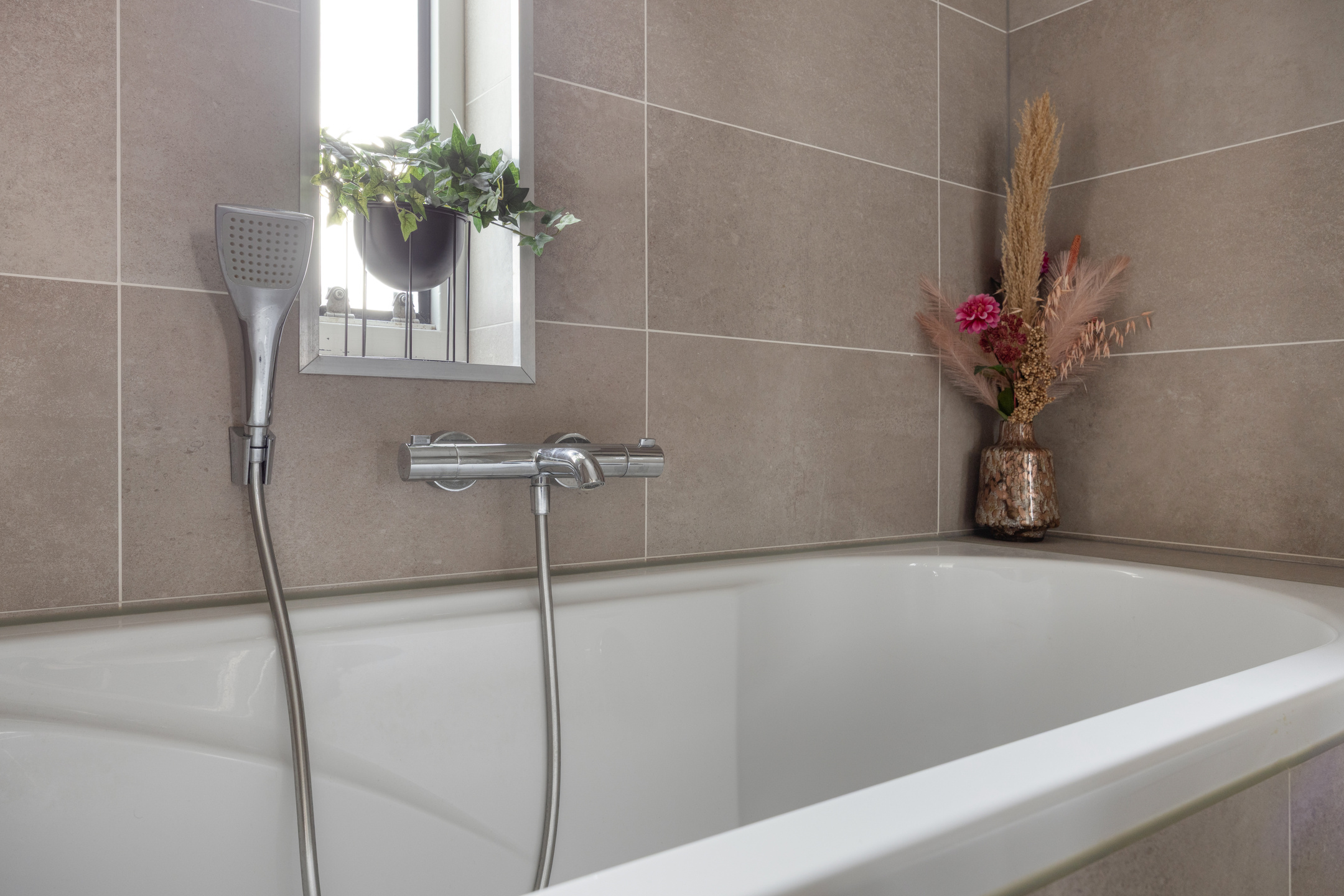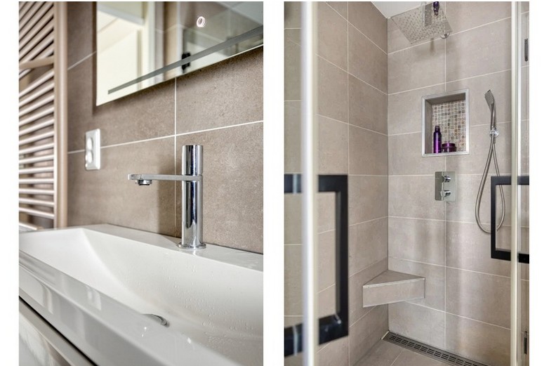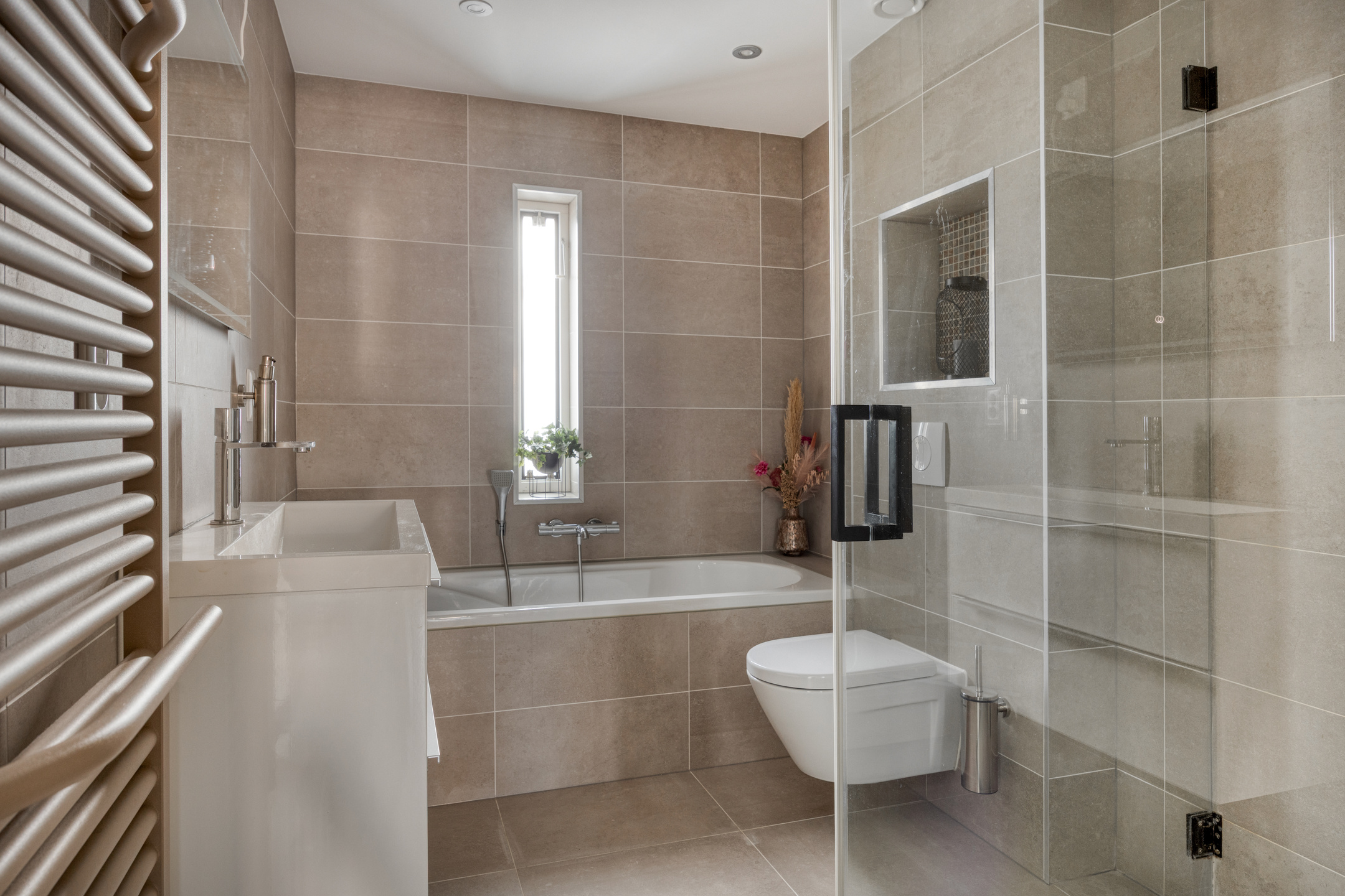 Mooie details zoals een nis boven het toilet, een designradiator en inbouwspots maken het geheel helemaal af.