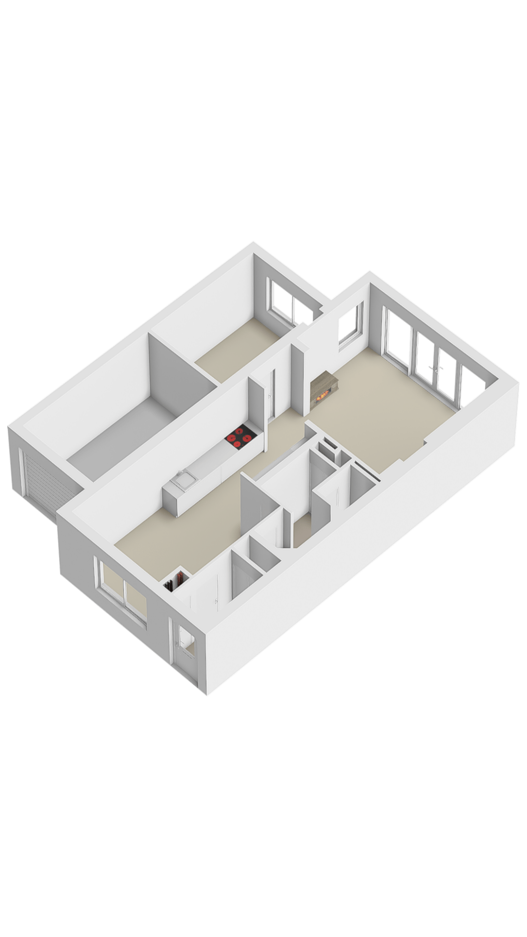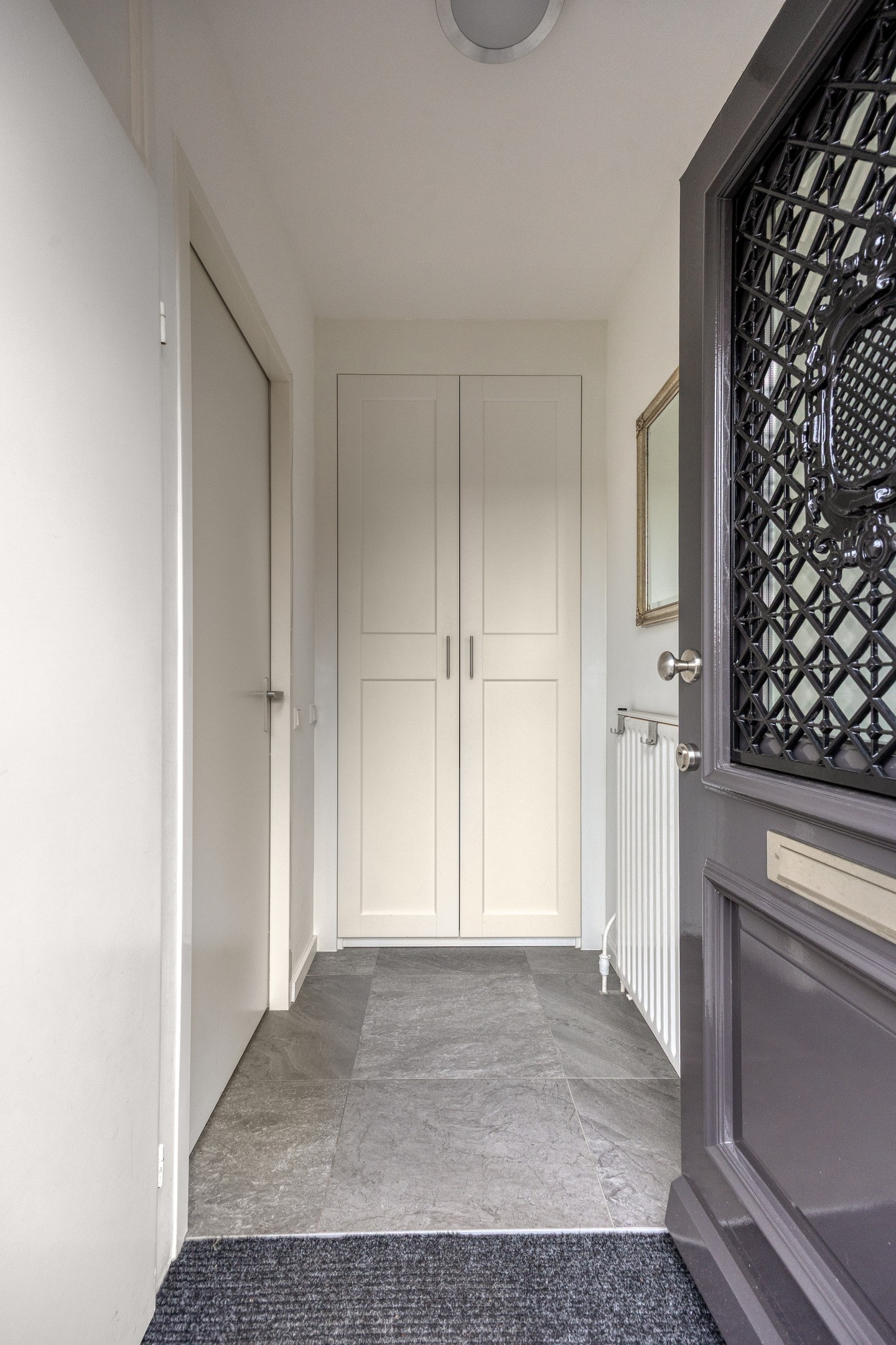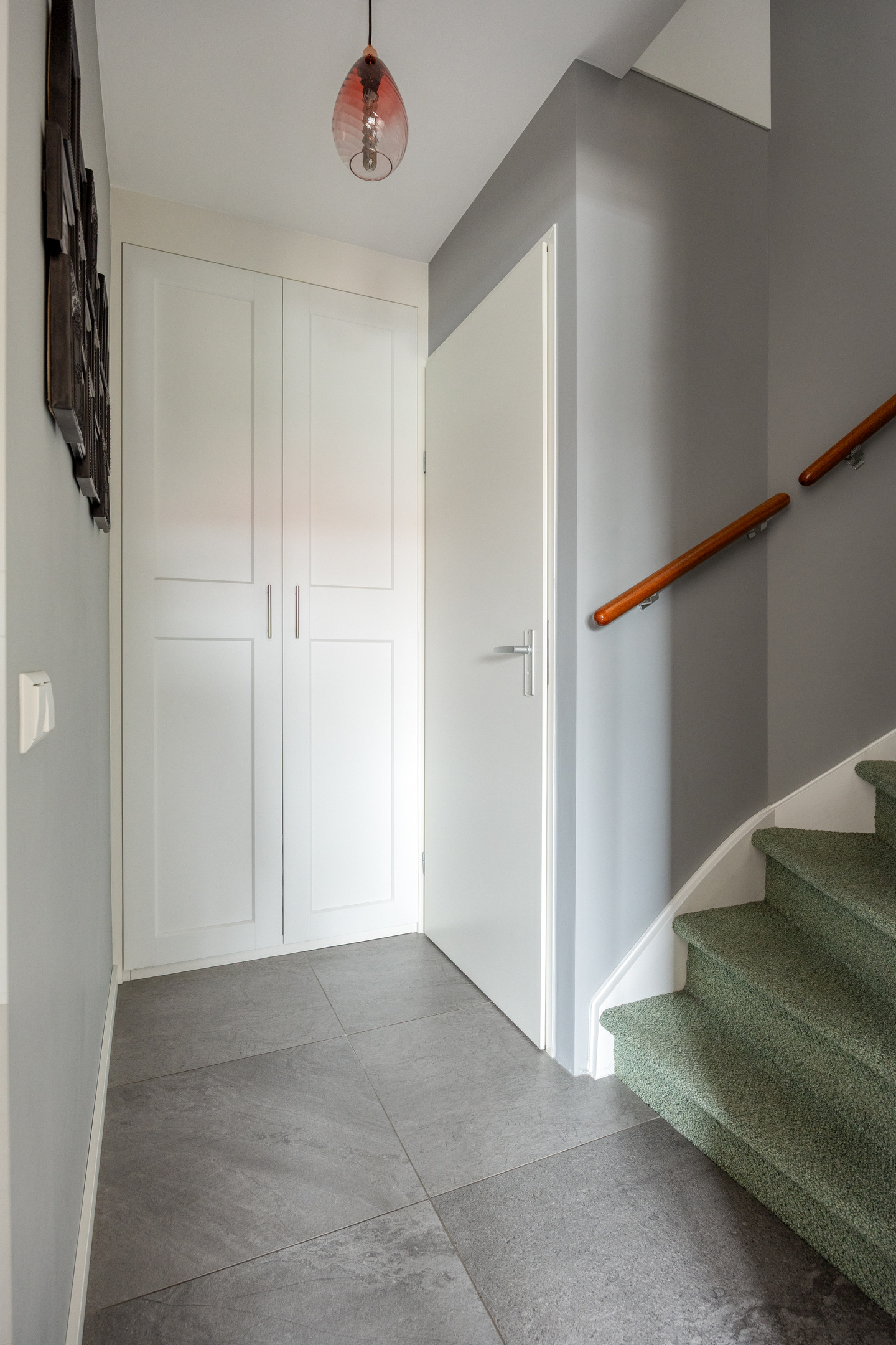 Via de entree kom je in de hal met meterkast, garderobekast en toegang tot de leefruimtes op de begane grond. Vanuit hier loop je door naar de woonruimte.