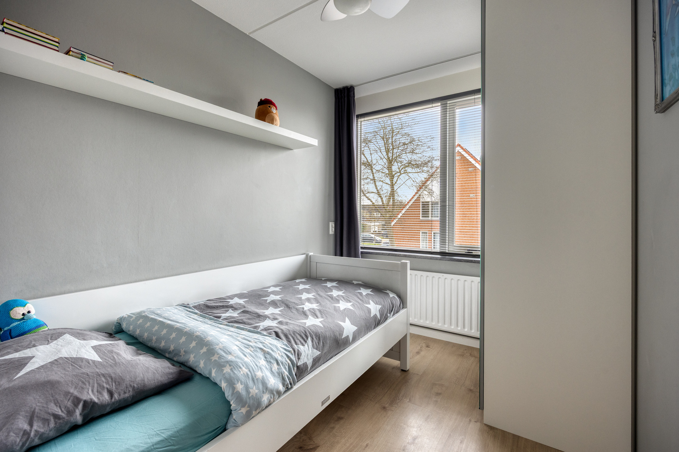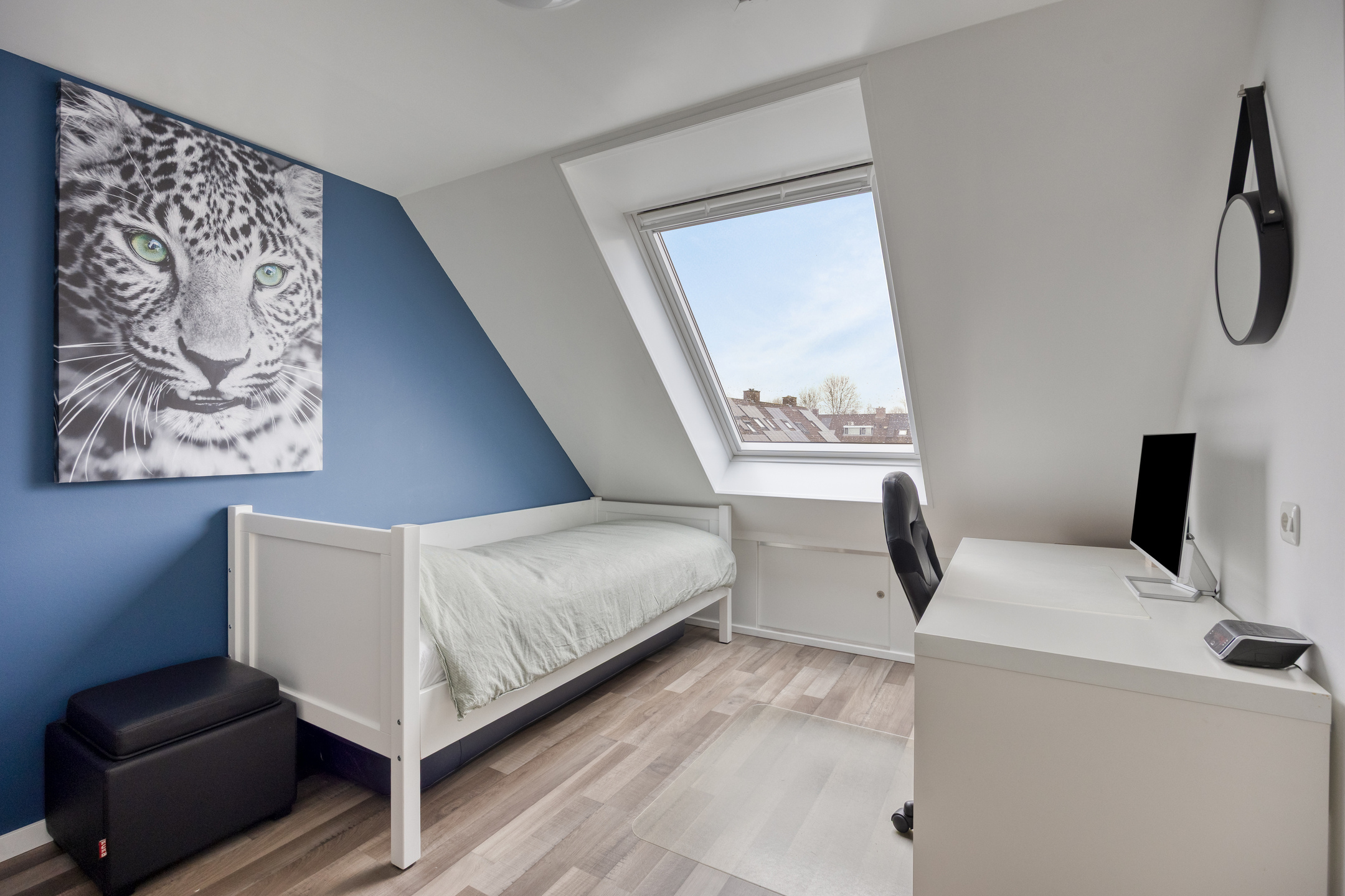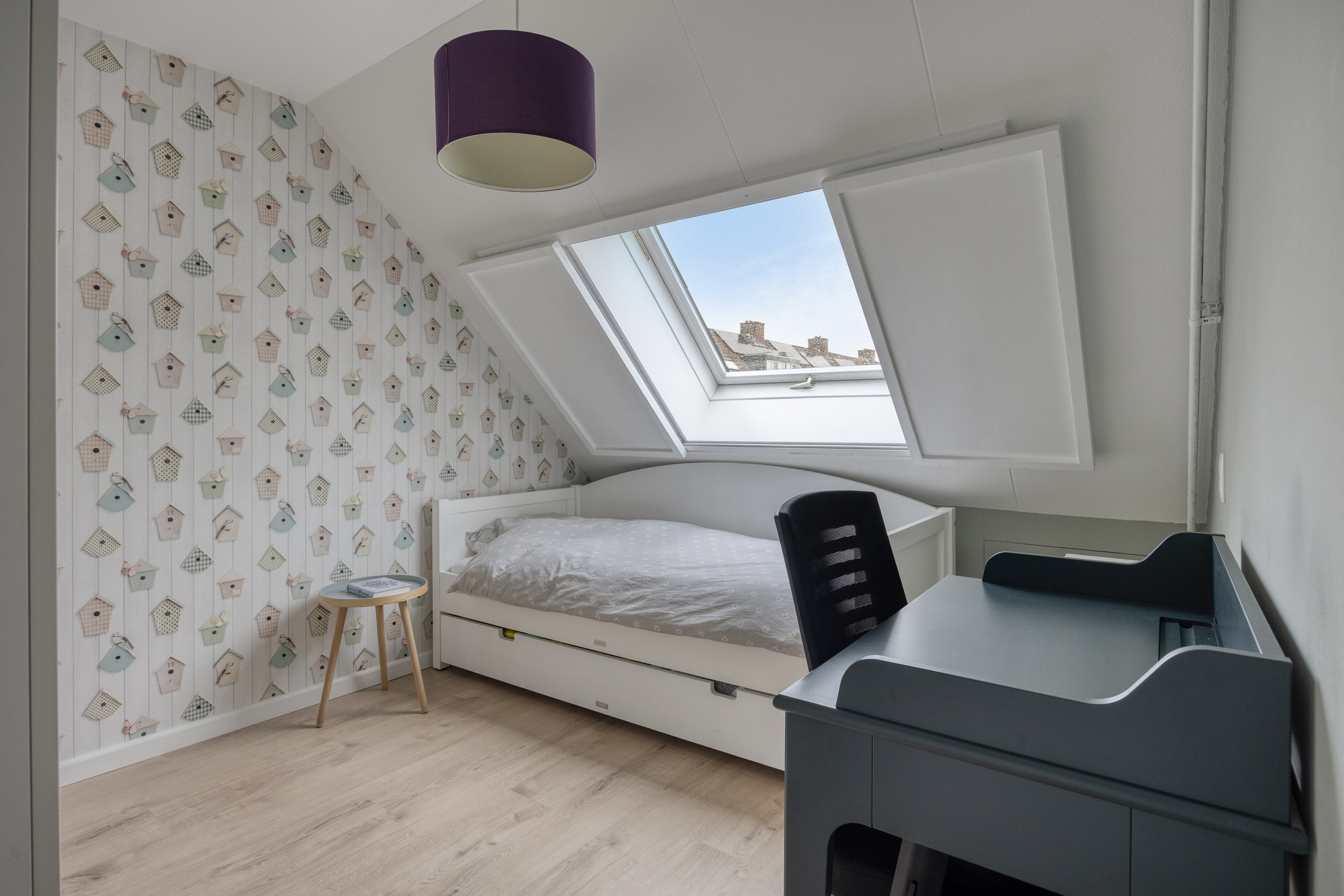 De tweede verdieping beschikt over een ruime vierde slaapkamer met dakraam en extra bergruimte achter de knieschotten.