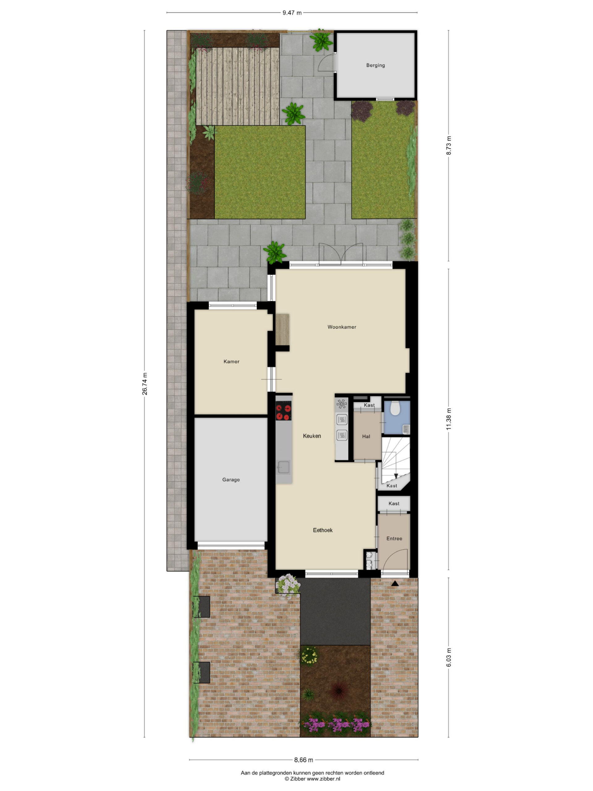 Daarnaast beschikt de woning over een mooie garage aan de zijkant, welke zowel geschikt is voor het parkeren van de auto als voor extra bergruimte.