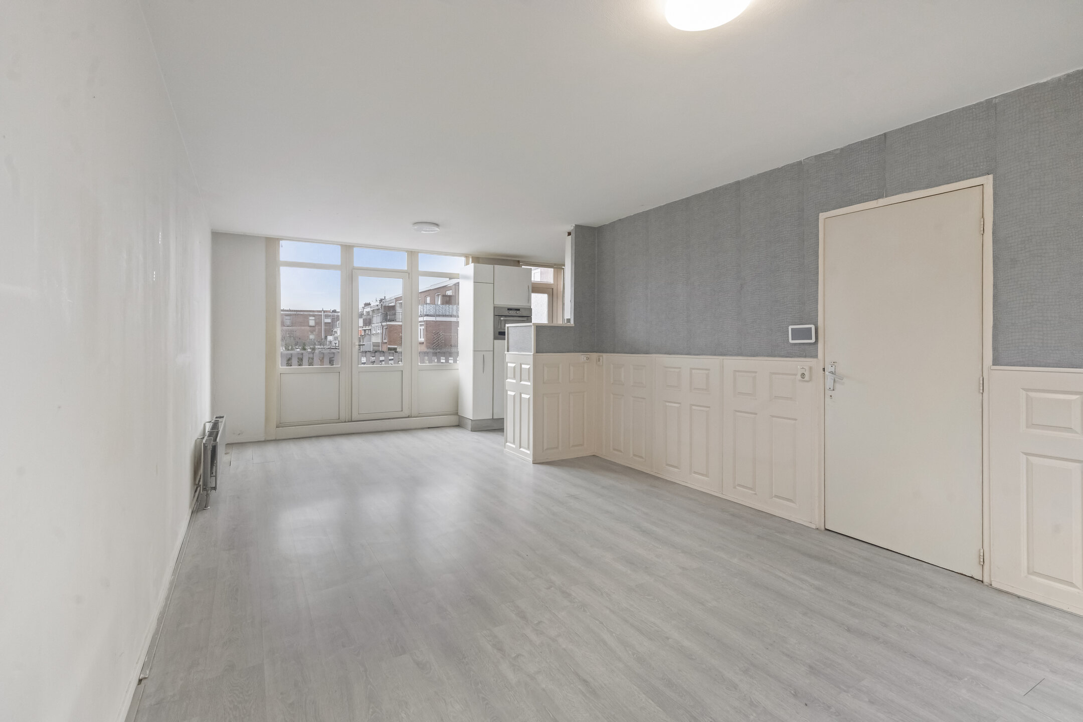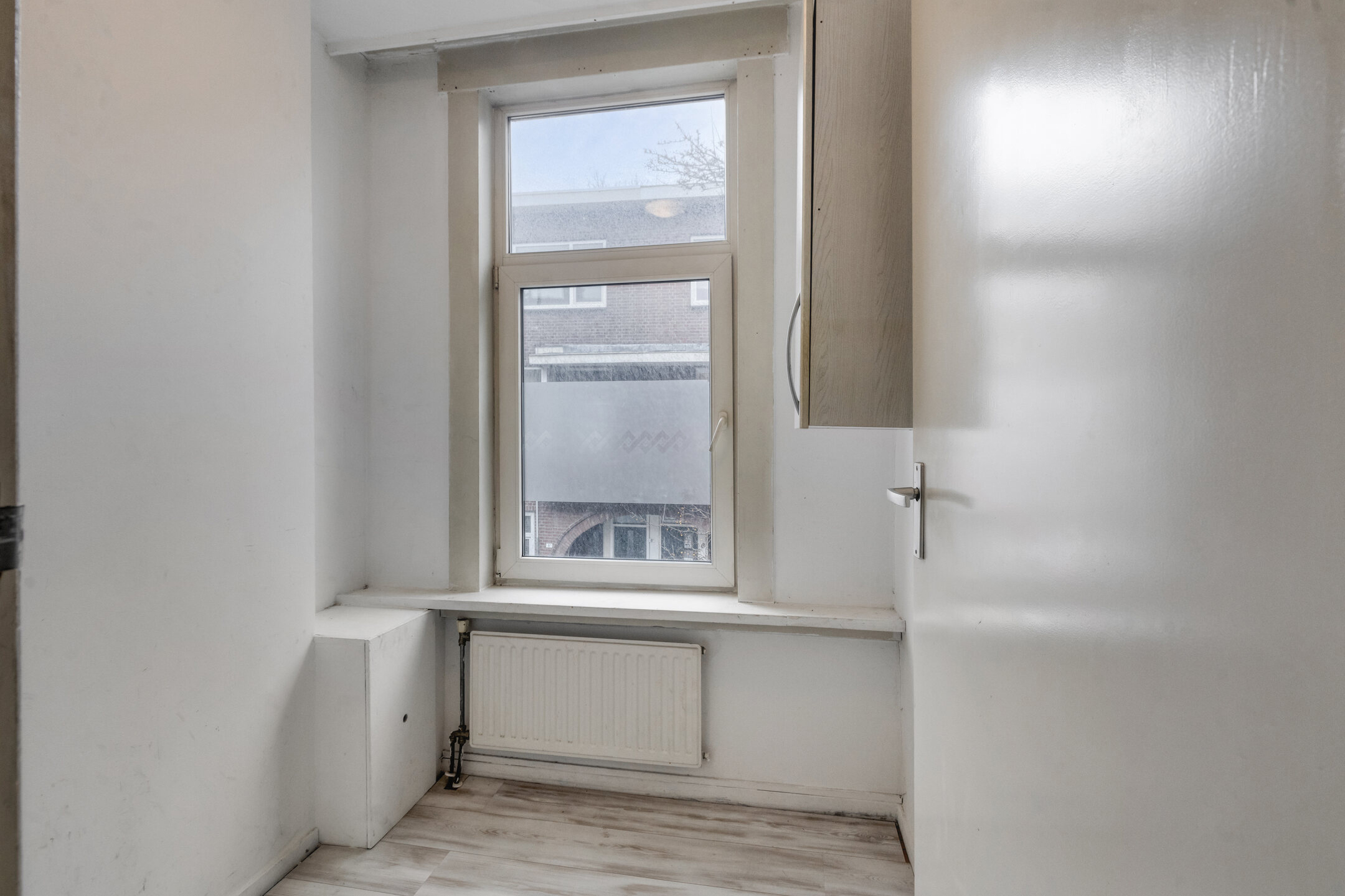 In een rustige straat in Schiedam-West ligt deze 4-kamer bovenwoning met balkon.