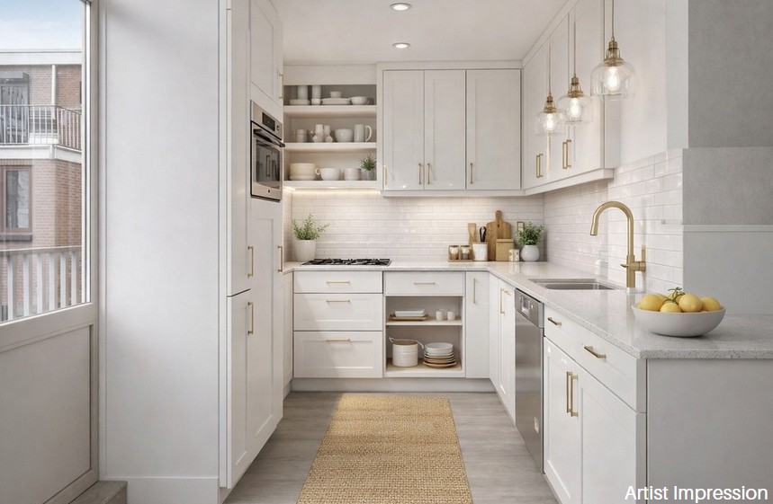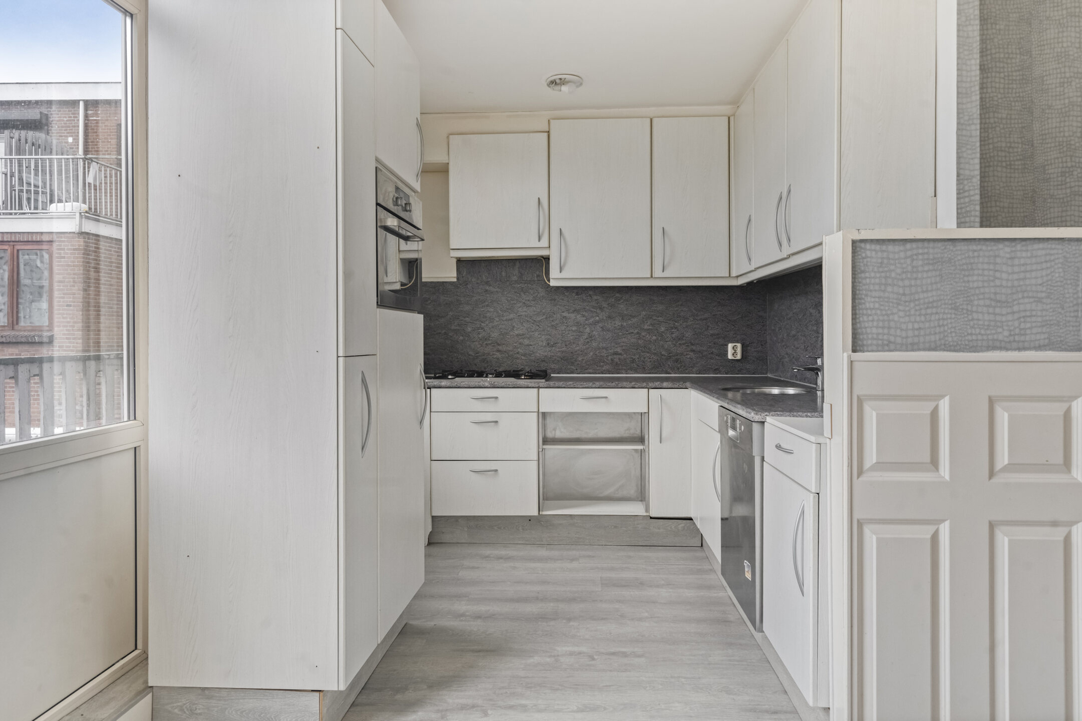 Vanuit de keuken is er directe toegang tot het balkon, een fijne buitenruimte van ca. 5,9 m².