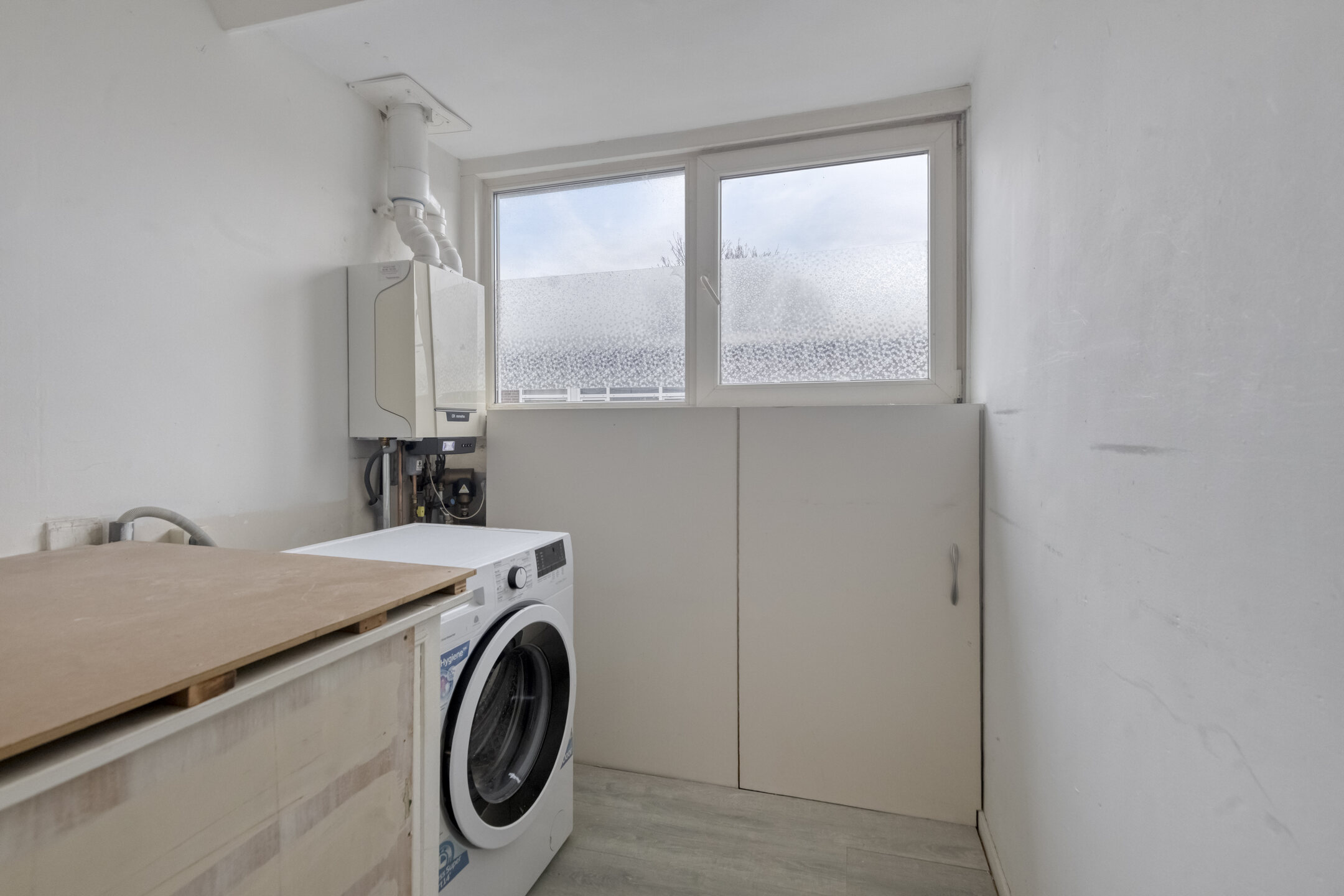 Daarnaast is er een aparte berging met ruimte voor wasmachine en extra opslag ook is hier de cv ketel terug te vinden.