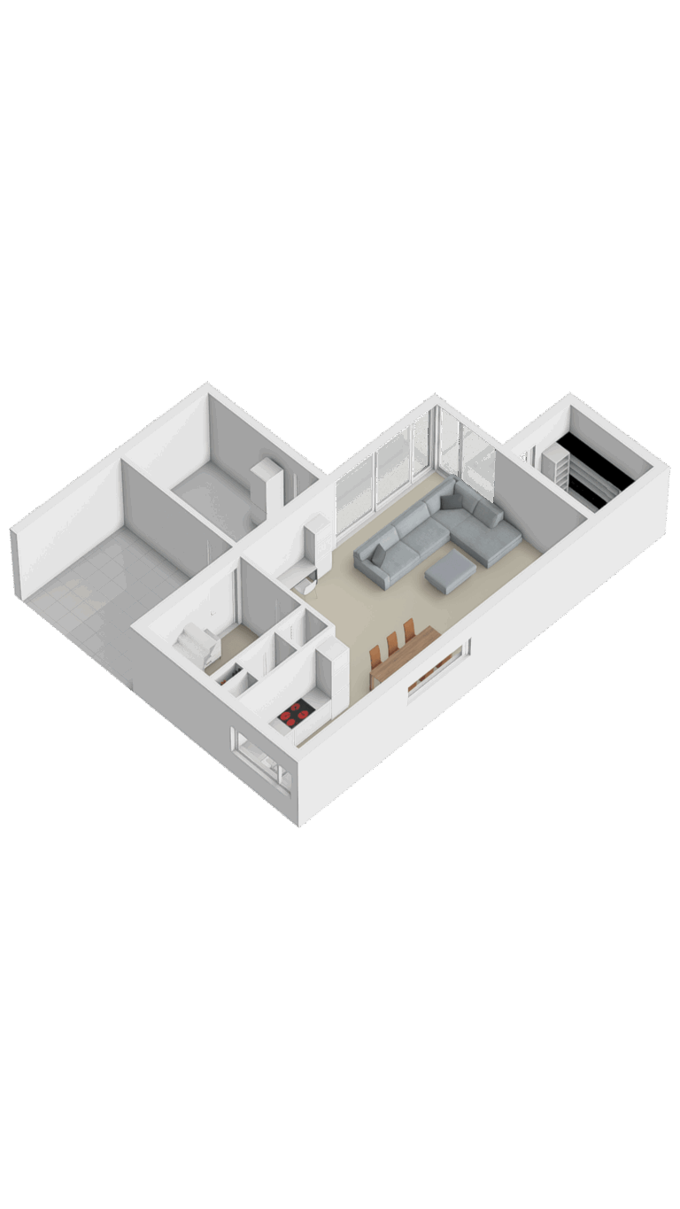 Ook tref je in deze ruime ontvangsthal een garderobe kast aan. Vanuit de hal stap je direct de lichte woonkamer binnen.
