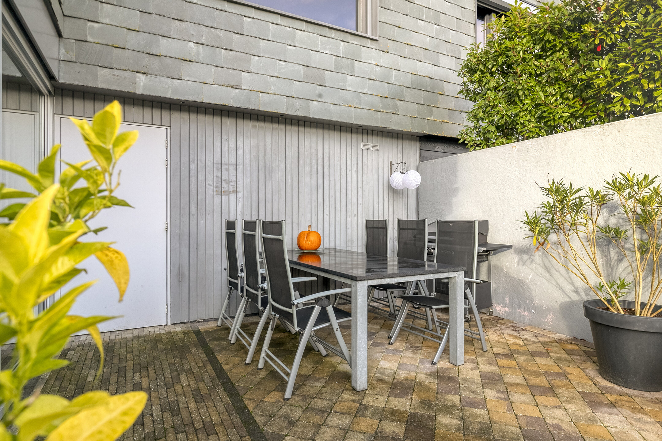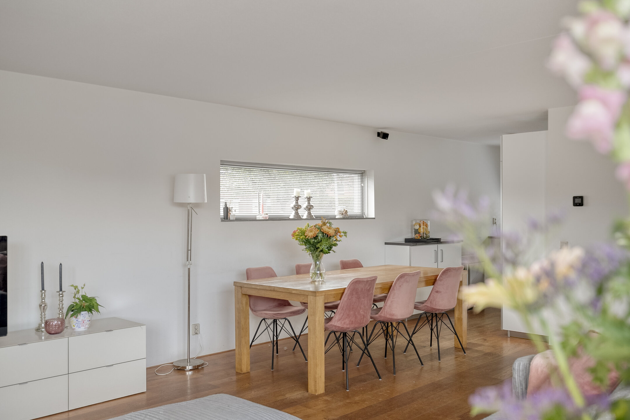 Dankzij de gunstige ligging op de zon geniet je hier de hele dag van een fijne lichtinval. Er is bovendien genoeg ruimte voor een grote zikhoek en eettafel, perfect voor gezellige etentjes met familie of vrienden.