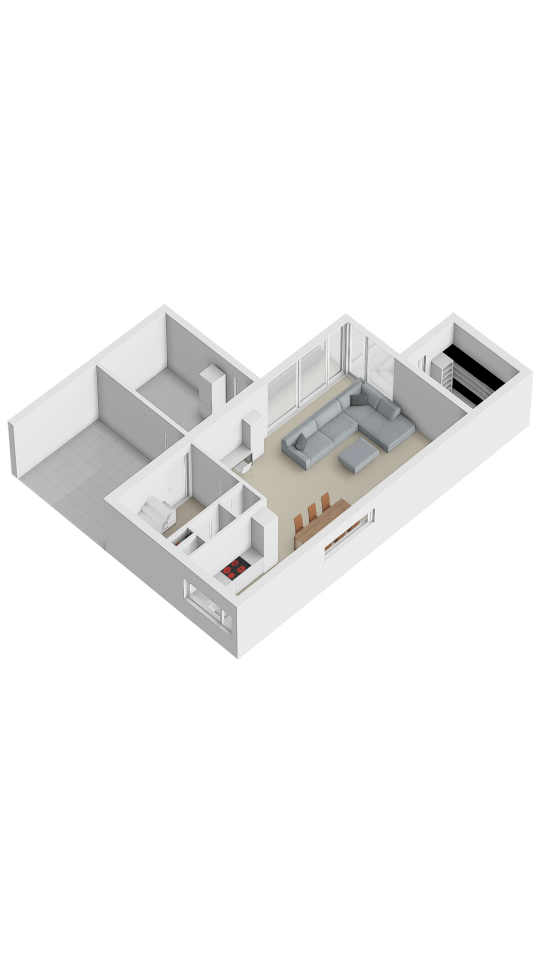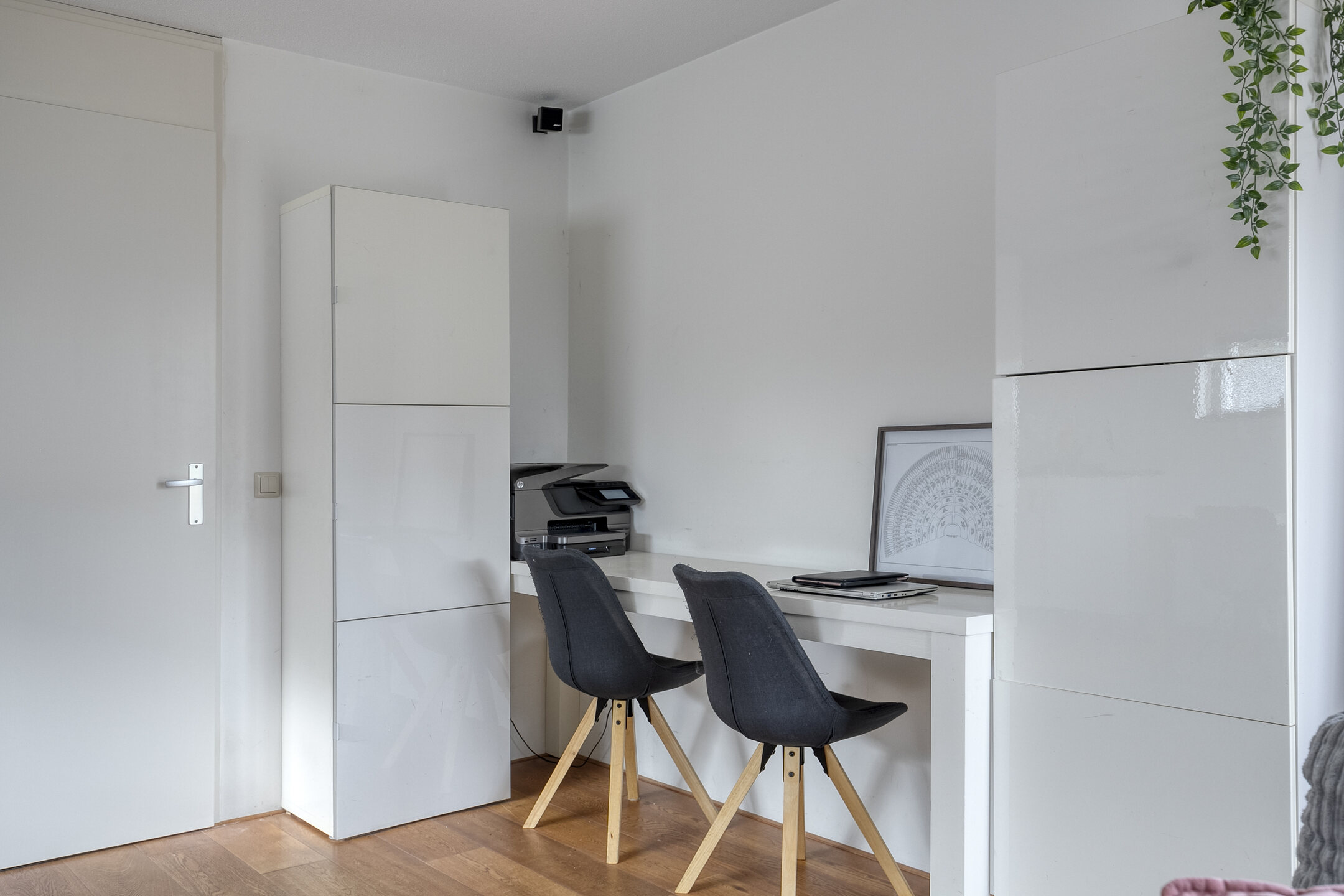 Ook tref je in deze ruime ontvangsthal een garderobe kast aan. Vanuit de hal stap je direct de lichte woonkamer binnen.