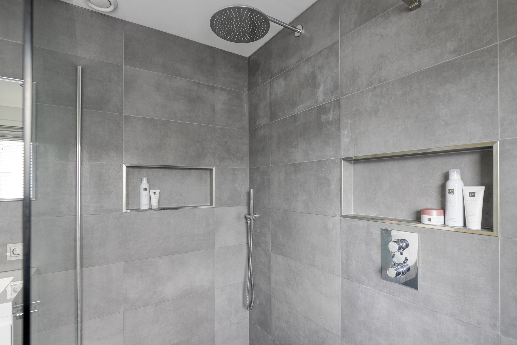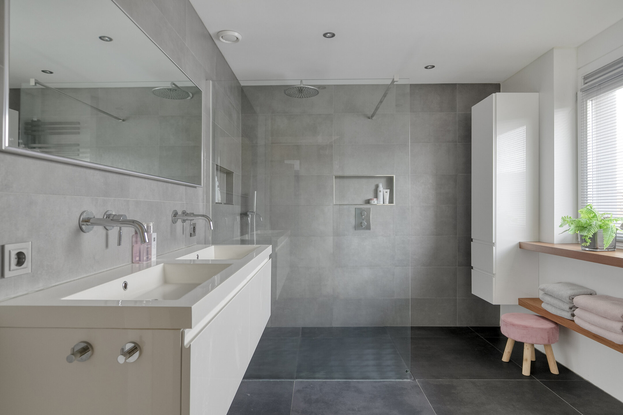 De dubbele wastafel maakt de ochtendroutine een stuk comfortabeler, zeker voor een groter gezin. De goede afwerking van de badkamer vind je terug o.a. in de fraaie inbouwkranen en keuze van materiaal gebruik!