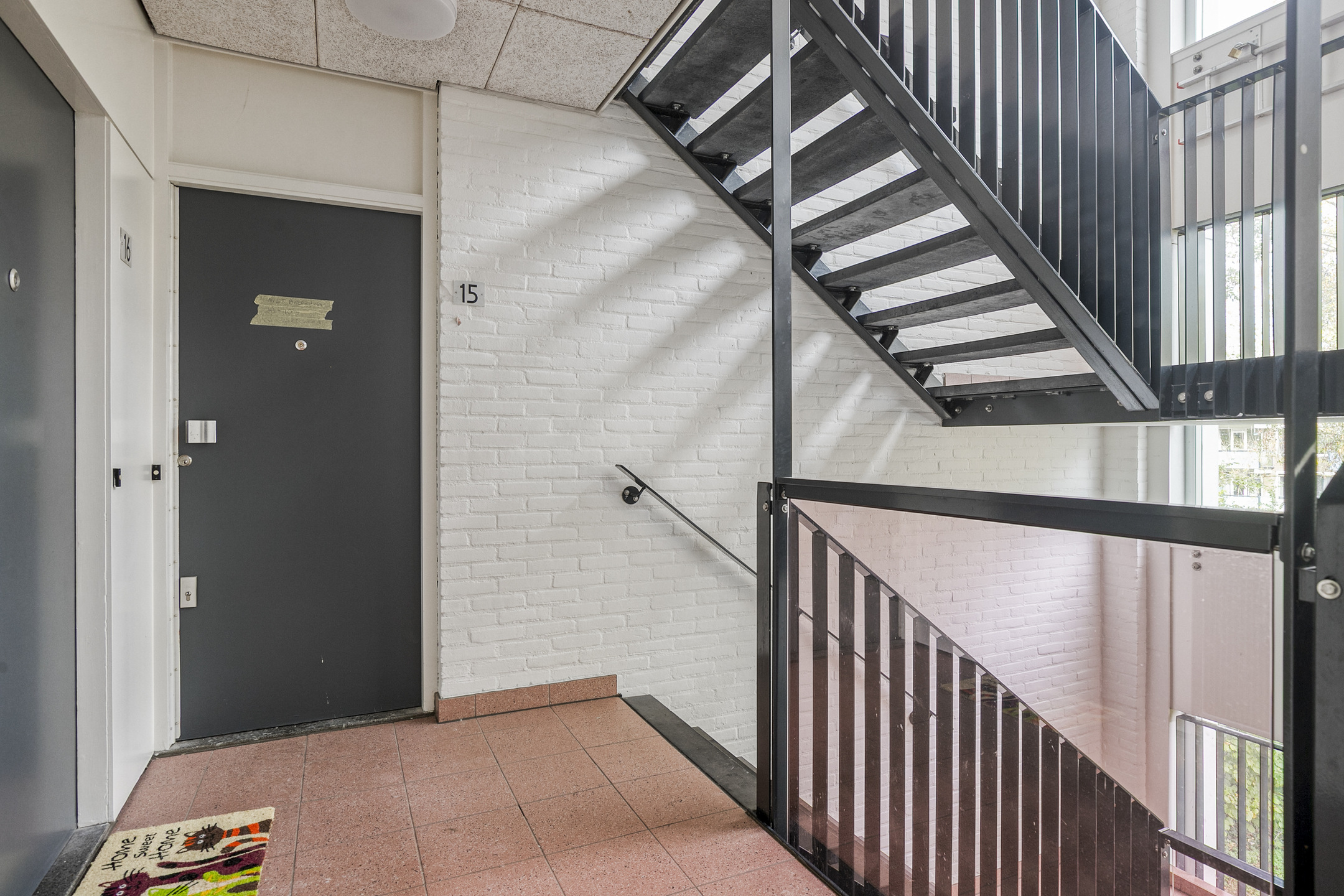 Centrale entree met bellenplateau, automatische deuren en trappenhuis. Op de begane grond beschik je over een eigen berging van circa 8 m².