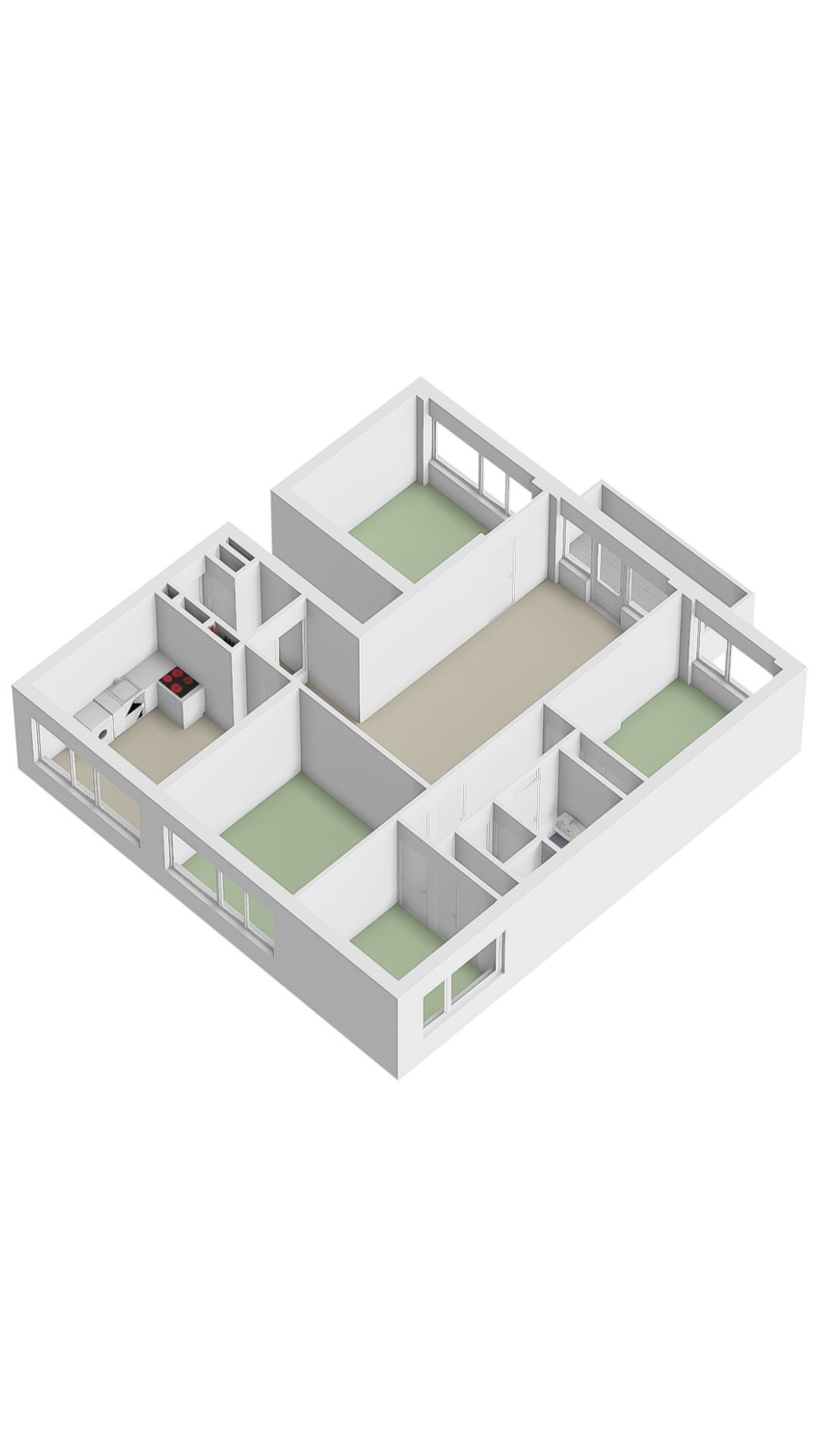 De slaapkamers zijn respectievelijk circa 12,6 m², 11,6 m² en 8 m² groot. Twee kamers beschikken over een vaste kast.
