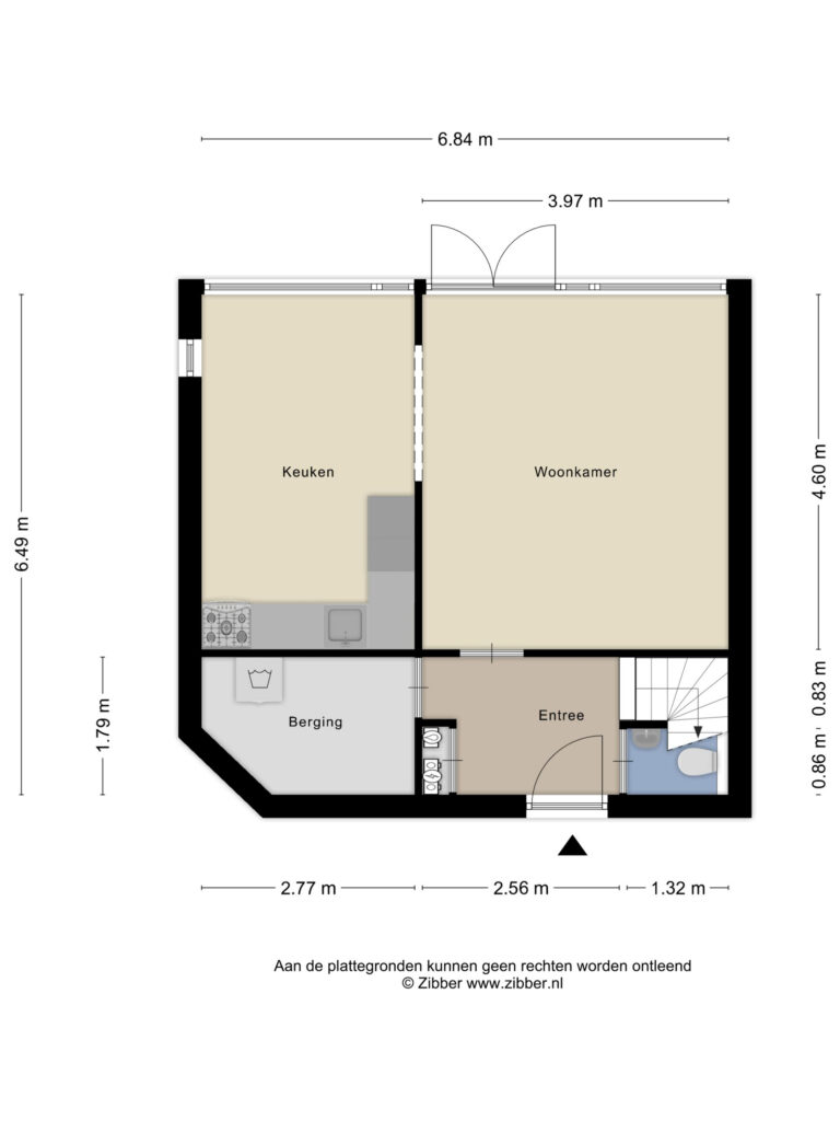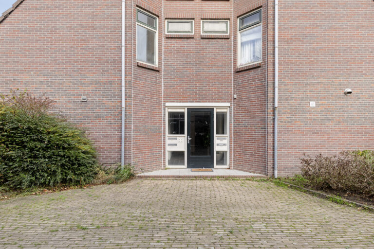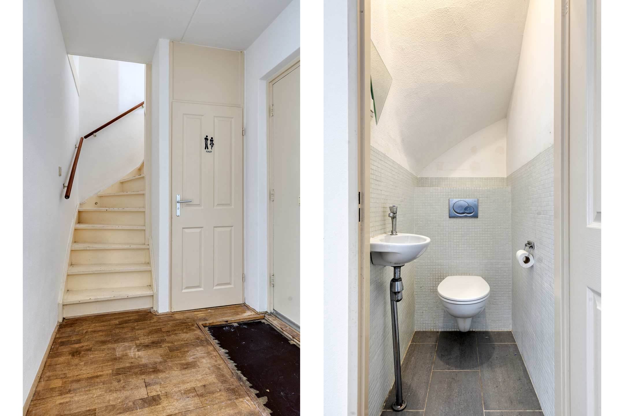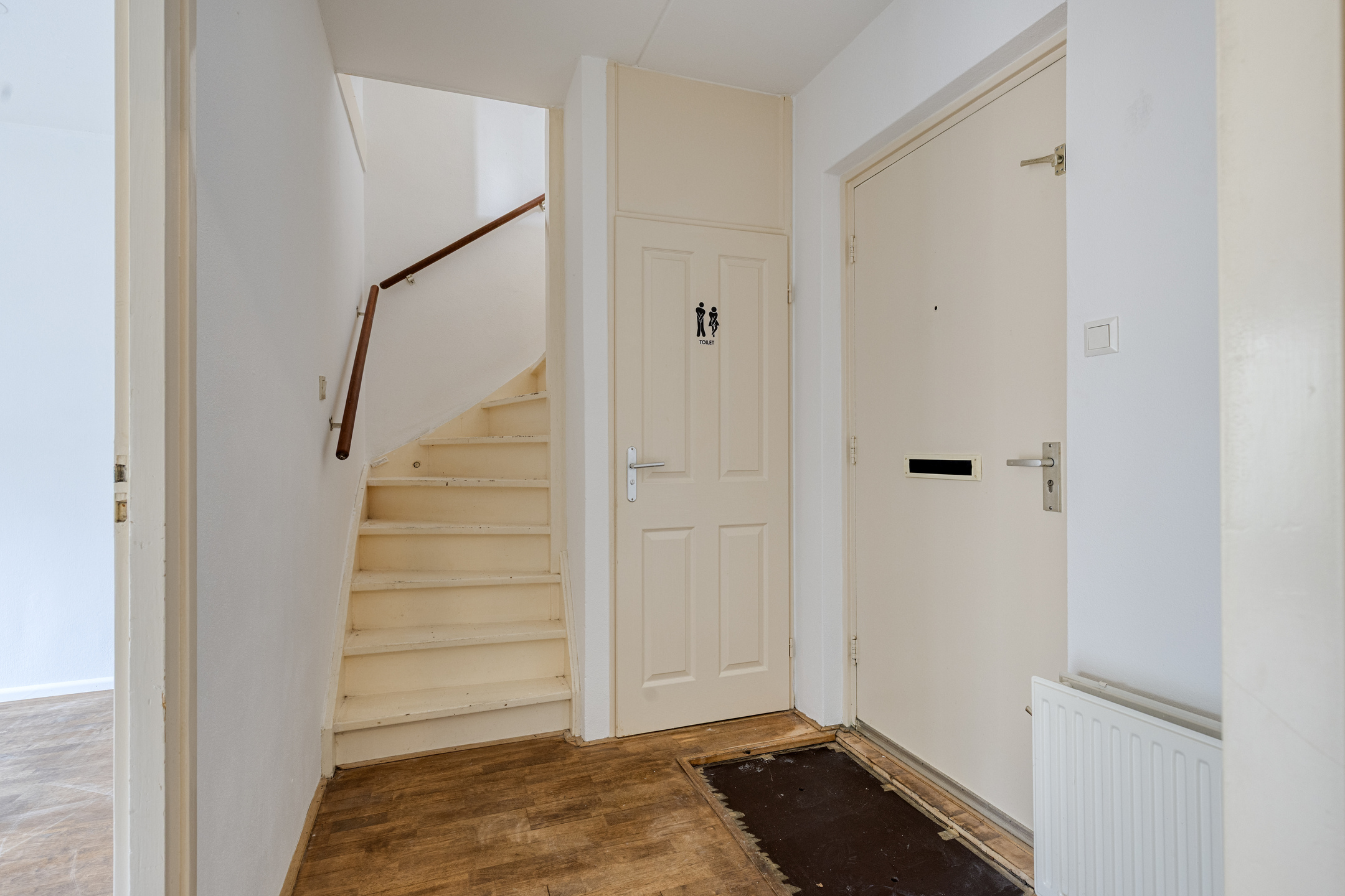 Entree met hal, meterkast en toiletruimte. Vanuit de hal heb je direct toegang tot de inpandige berging, ideaal te gebruiken als wasruimte dankzij de aanwezige wasmachine- en drogeraansluitingen.
