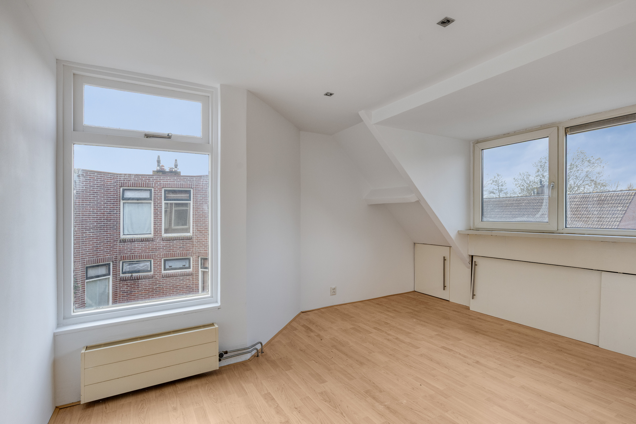 Ruime slaapkamer met praktische bergruimte achter de knieschotten.