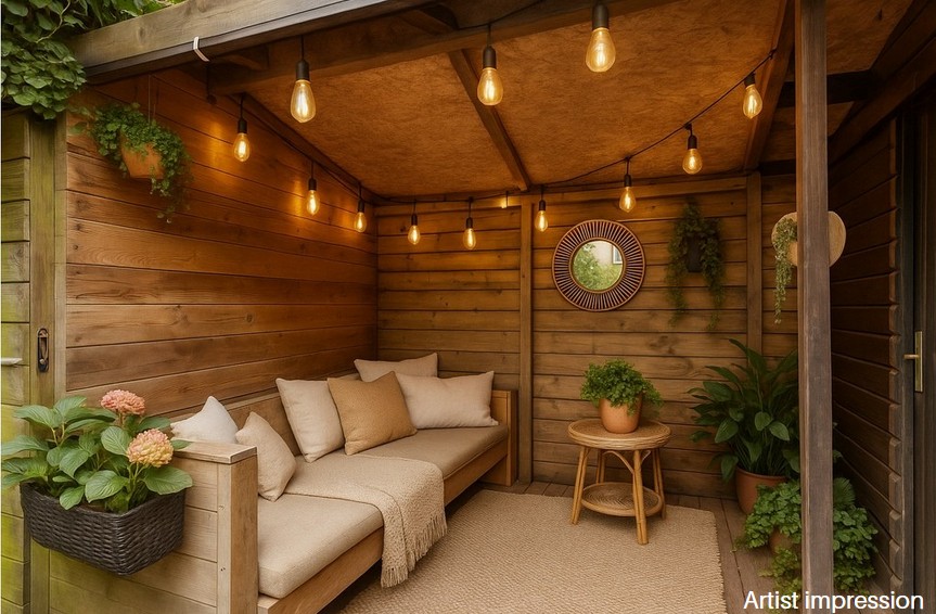 Achter in de tuin bevinden zich twee bergingen, ideaal voor het stallen van fietsen, het uitoefenen van een hobby of extra opslag.