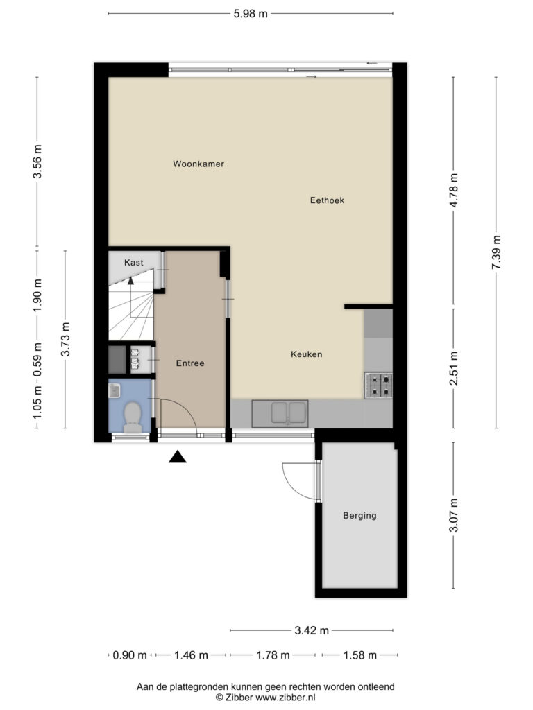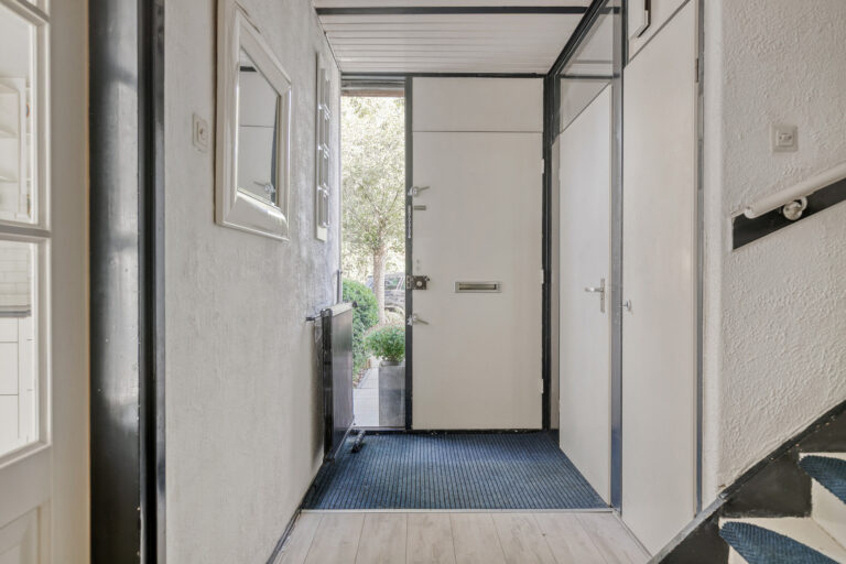 Je komt binnen in de hal met de meterkast, toiletruimte en een handige opbergkast onder de trap.