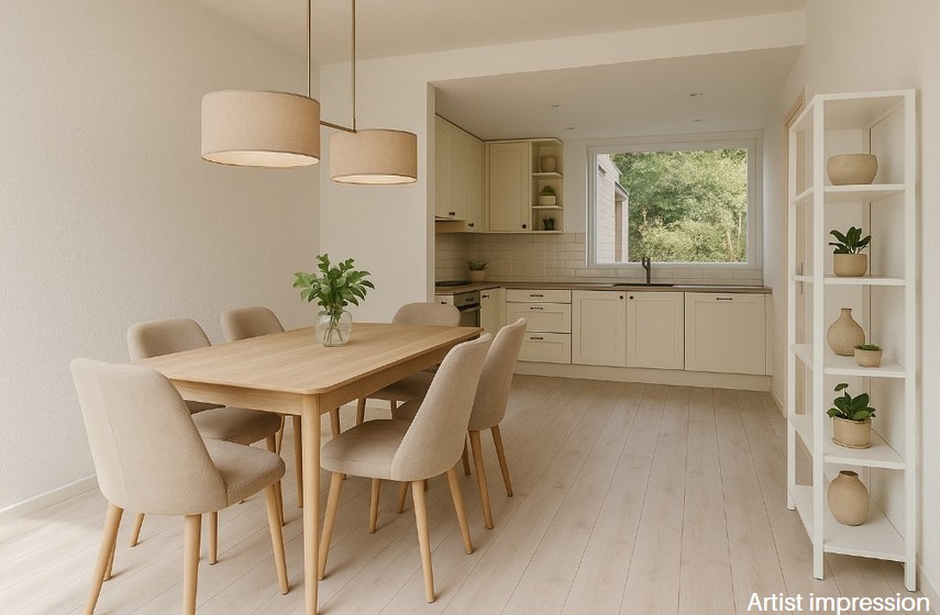 Daarnaast is er voldoende ruimte voor een eettafel, perfect voor gezellige etentjes met familie of vrienden.