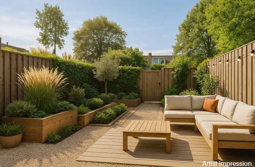 Er is genoeg ruimte voor een gezellige loungehoek, een zomerse barbecue of juist een knus vuurtje in de winter met familie en vrienden. Een tuin waar je het hele jaar door van kunt genieten!