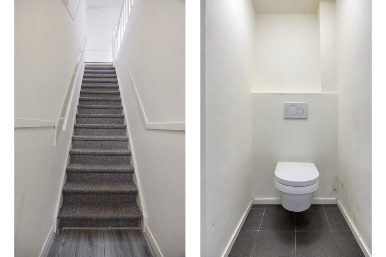 Op deze verdieping bevinden zich tevens een slaapkamer, een badkamer met douche en wastafel en een separate toiletruimte. Vanuit de overloop is er daarnaast toegang tot een klein balkon aan de voorzijde van de woning.