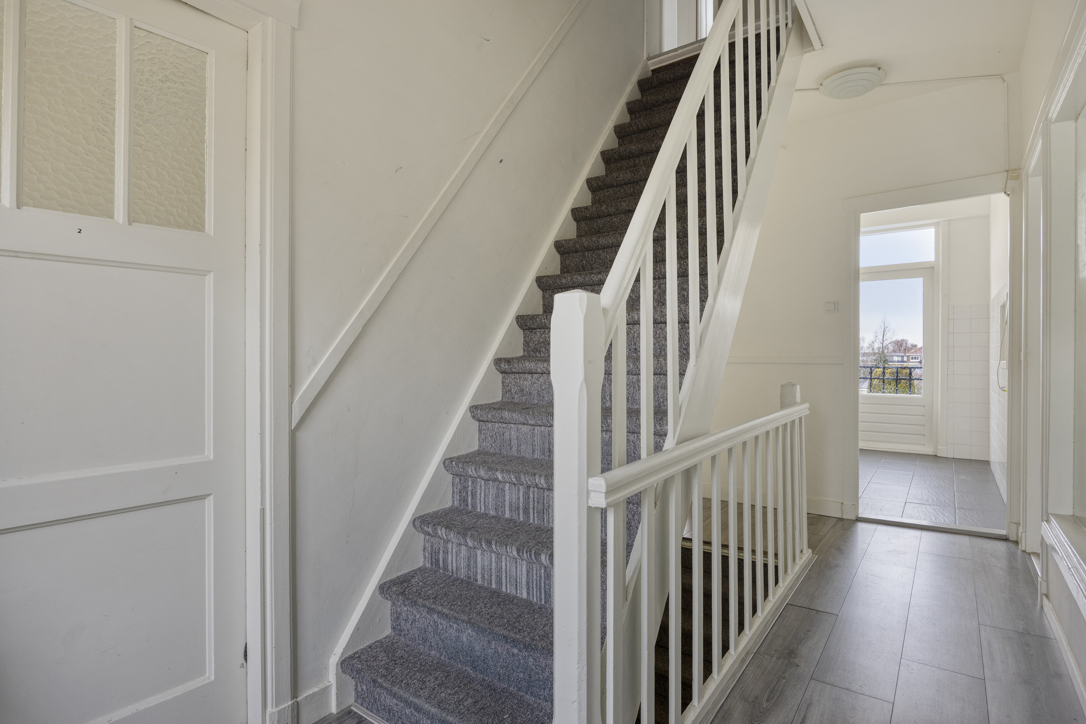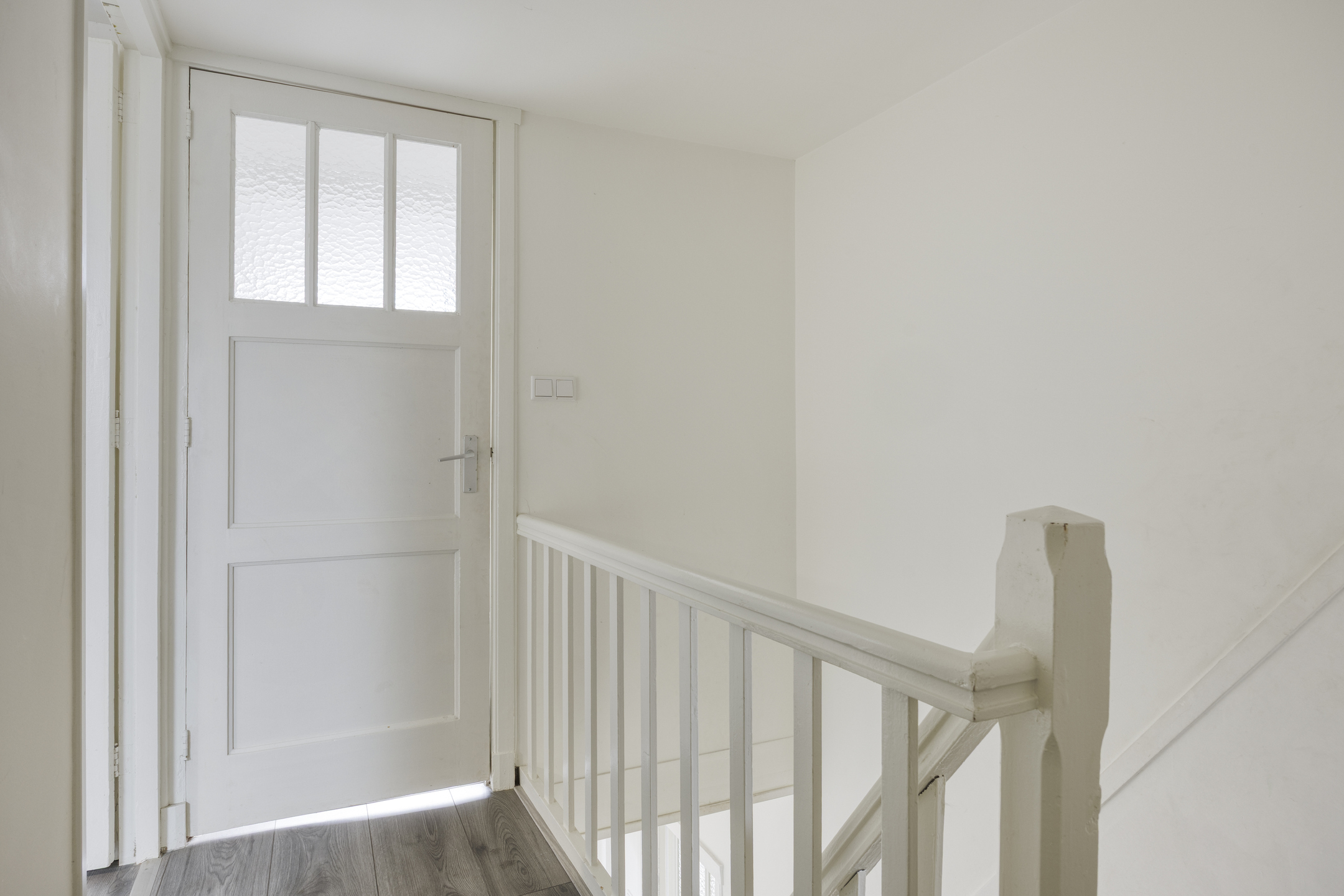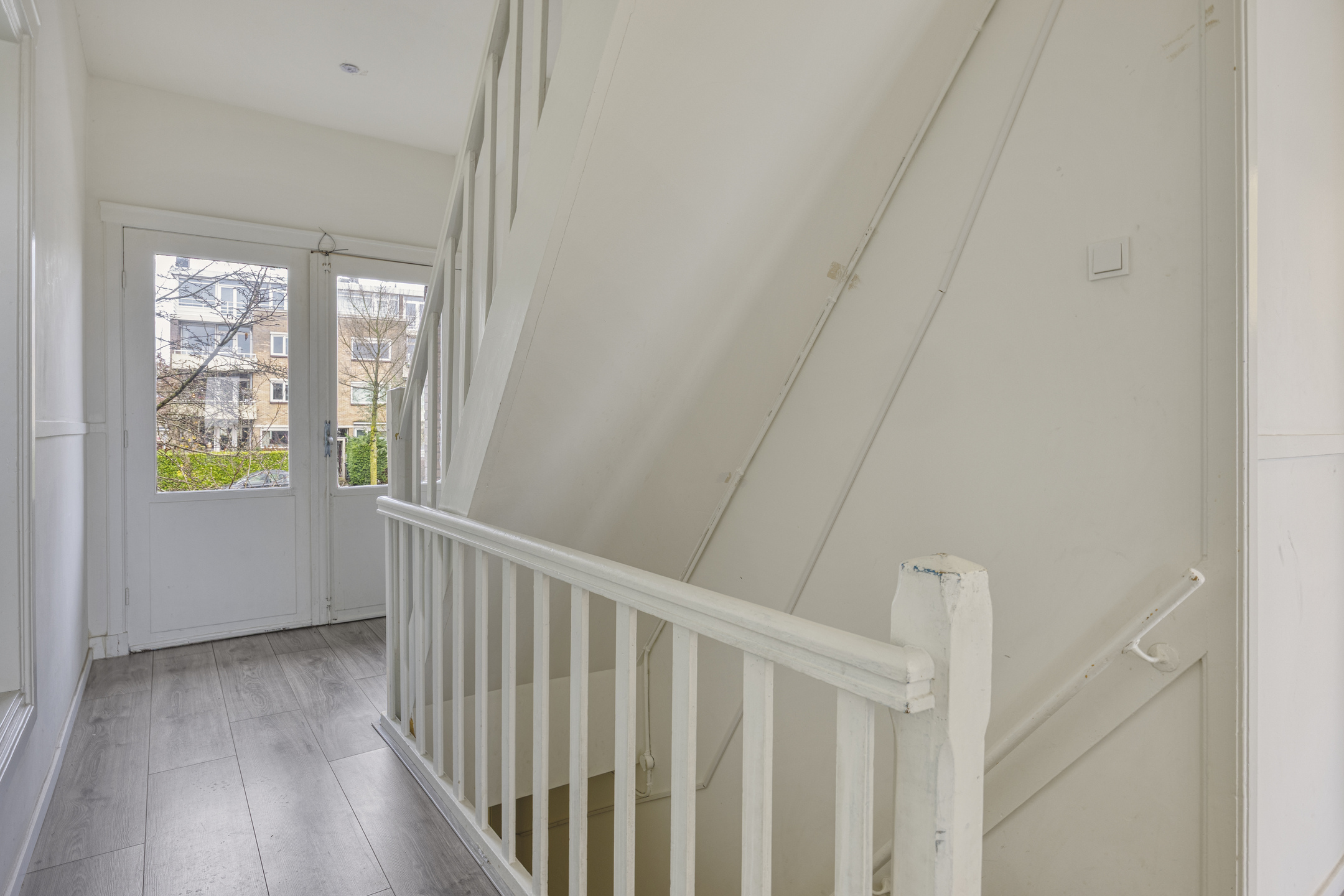 Eigen entree op straatniveau met hal en trapopgang naar de verdiepingen.