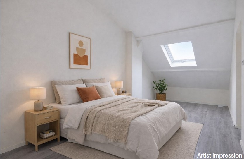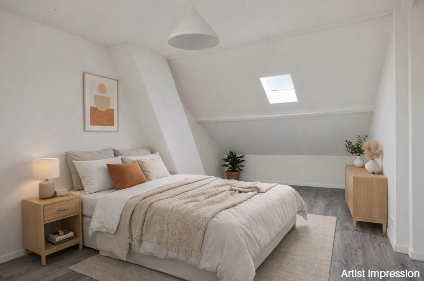 Overloop met toegang tot twee ruime slaapkamers. Beide kamers zijn goed van formaat en multifunctioneel inzetbaar, bijvoorbeeld als slaap-, werk- of hobbyruimte.