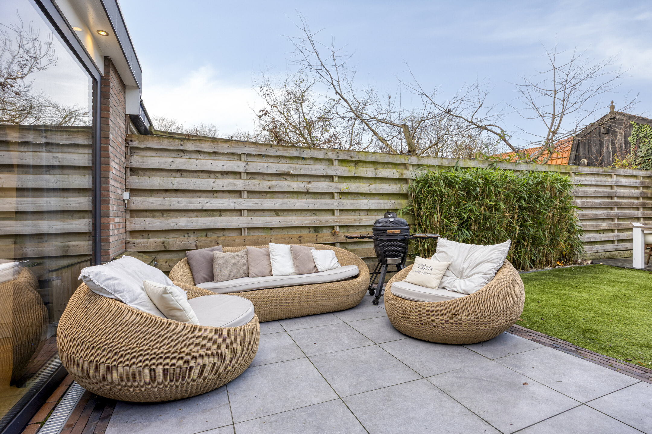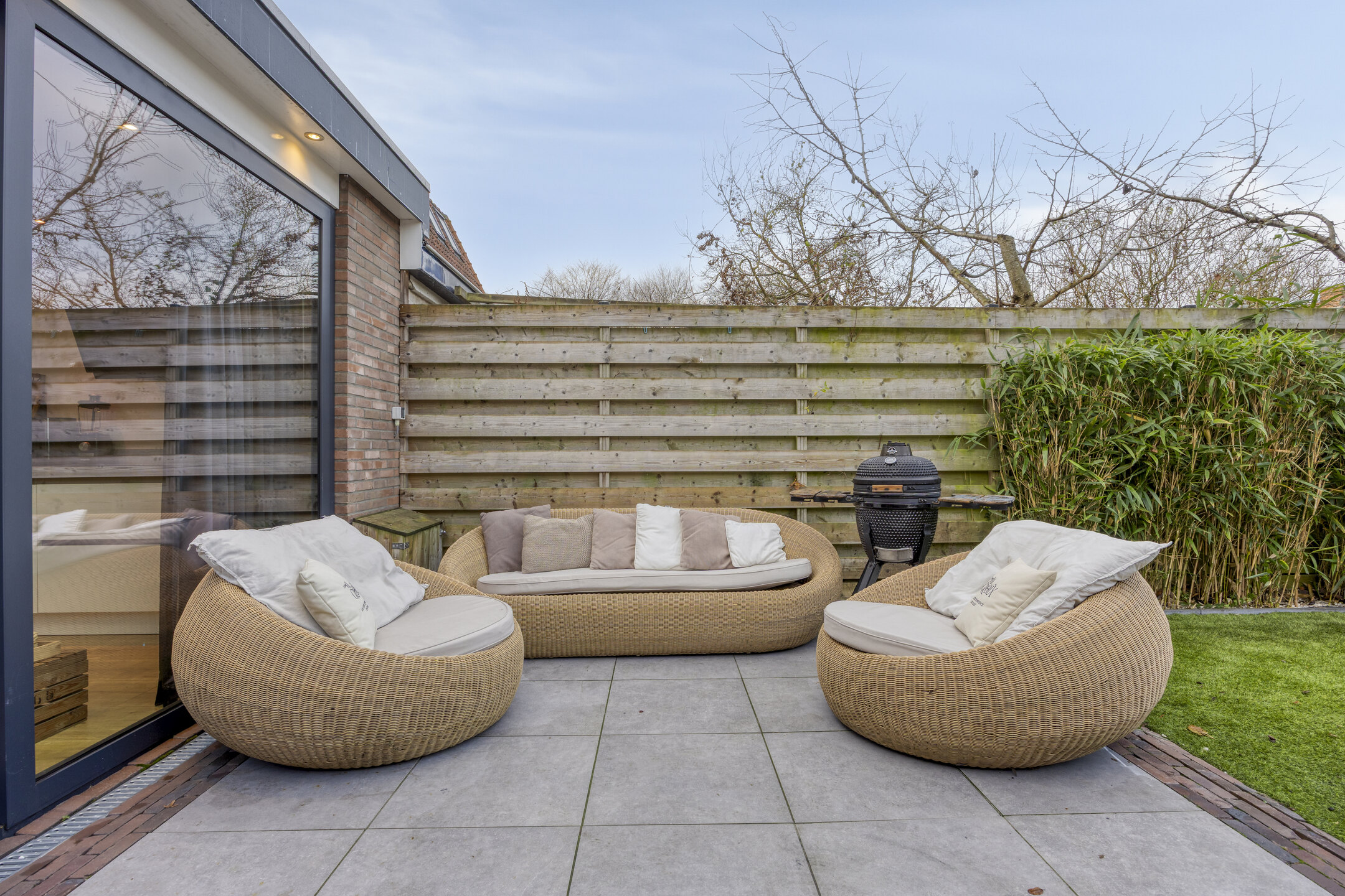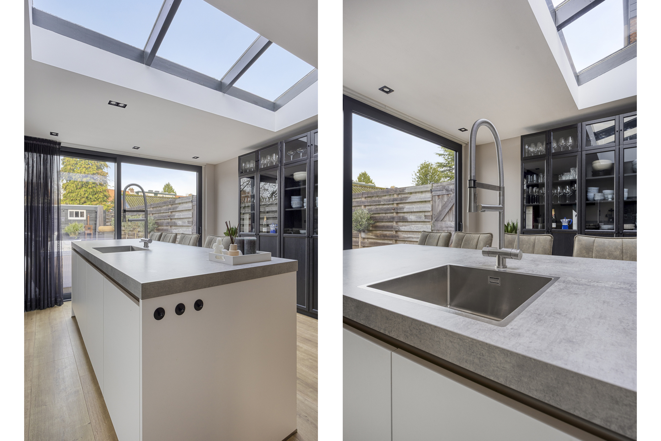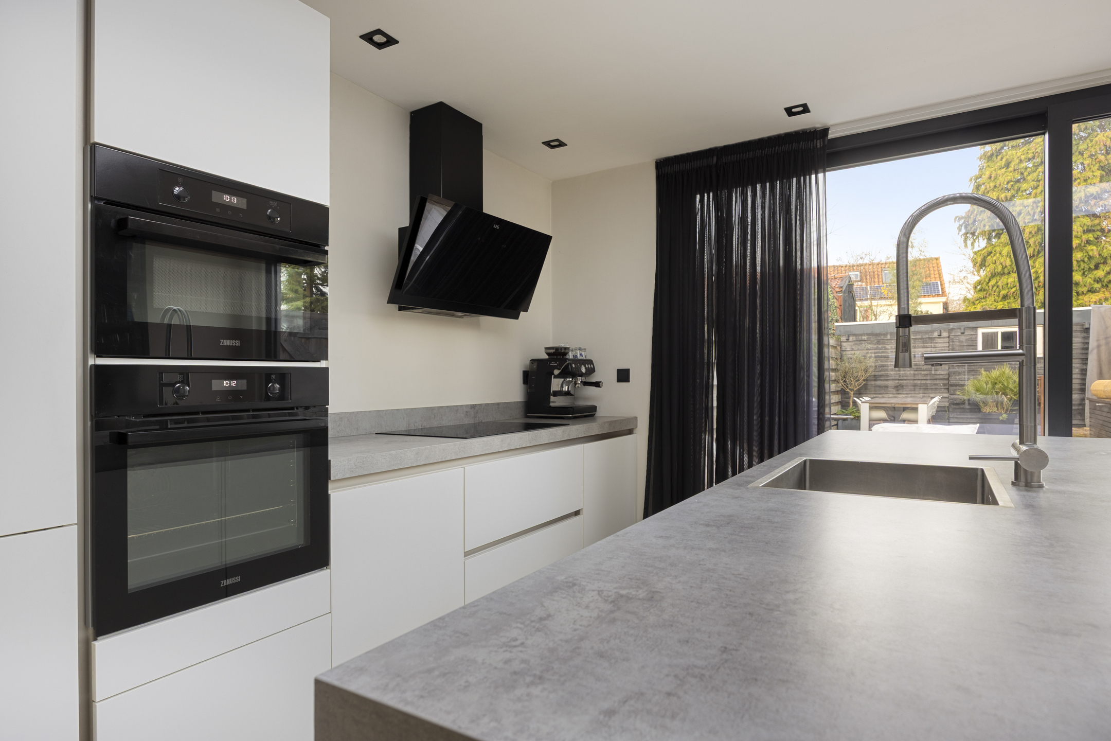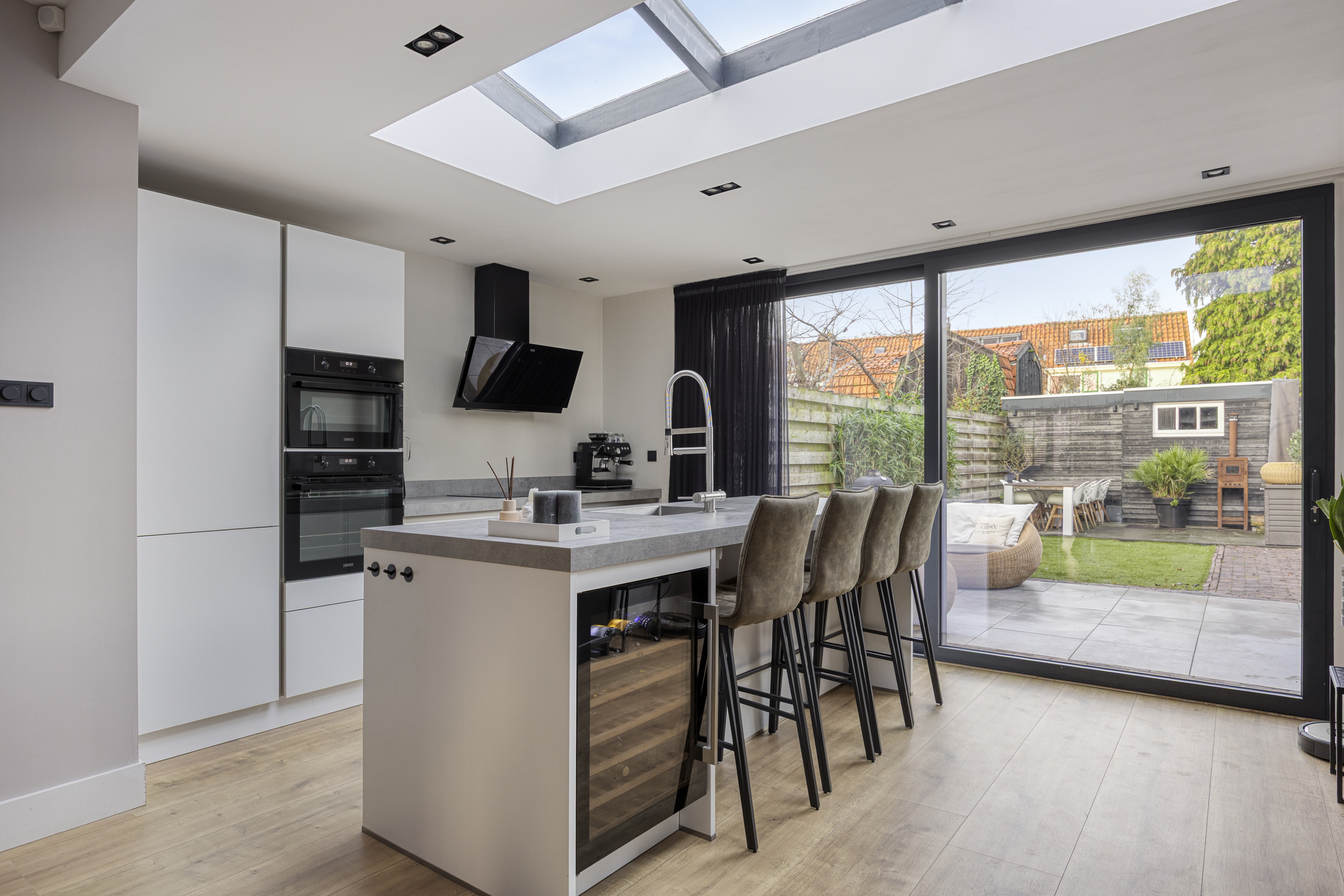 Via de schuifpui loop je zo de zonnige tuin in, waardoor binnen en buiten op natuurlijke wijze in elkaar overlopen.