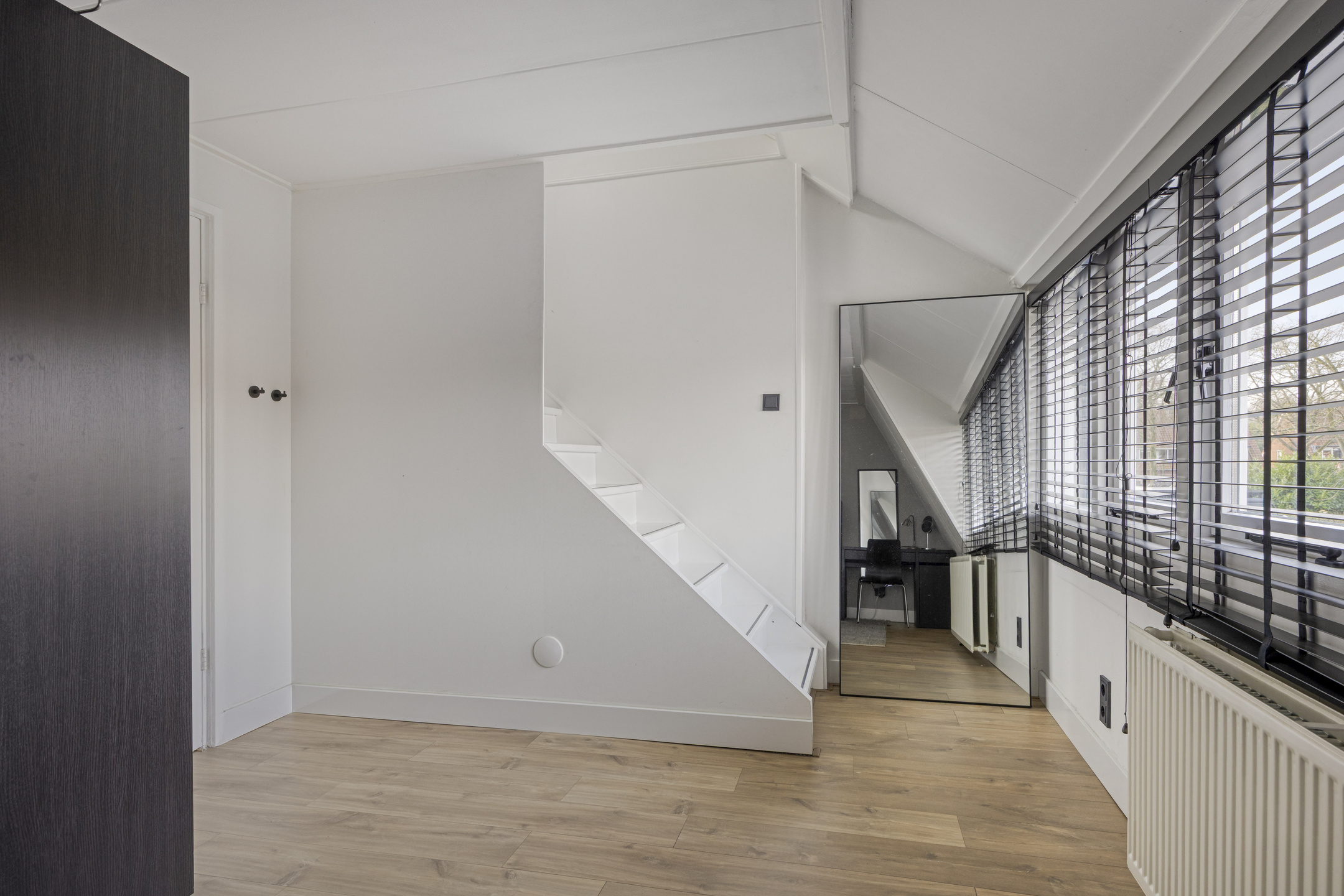 Via een vaste trap bereik je de tweede verdieping. Deze ruime zolderverdieping is ingericht als open ruimte maar biedt uitstekende mogelijkheden voor het creëren van een derde slaapkamer, een werkplek of een hobbyruimte.