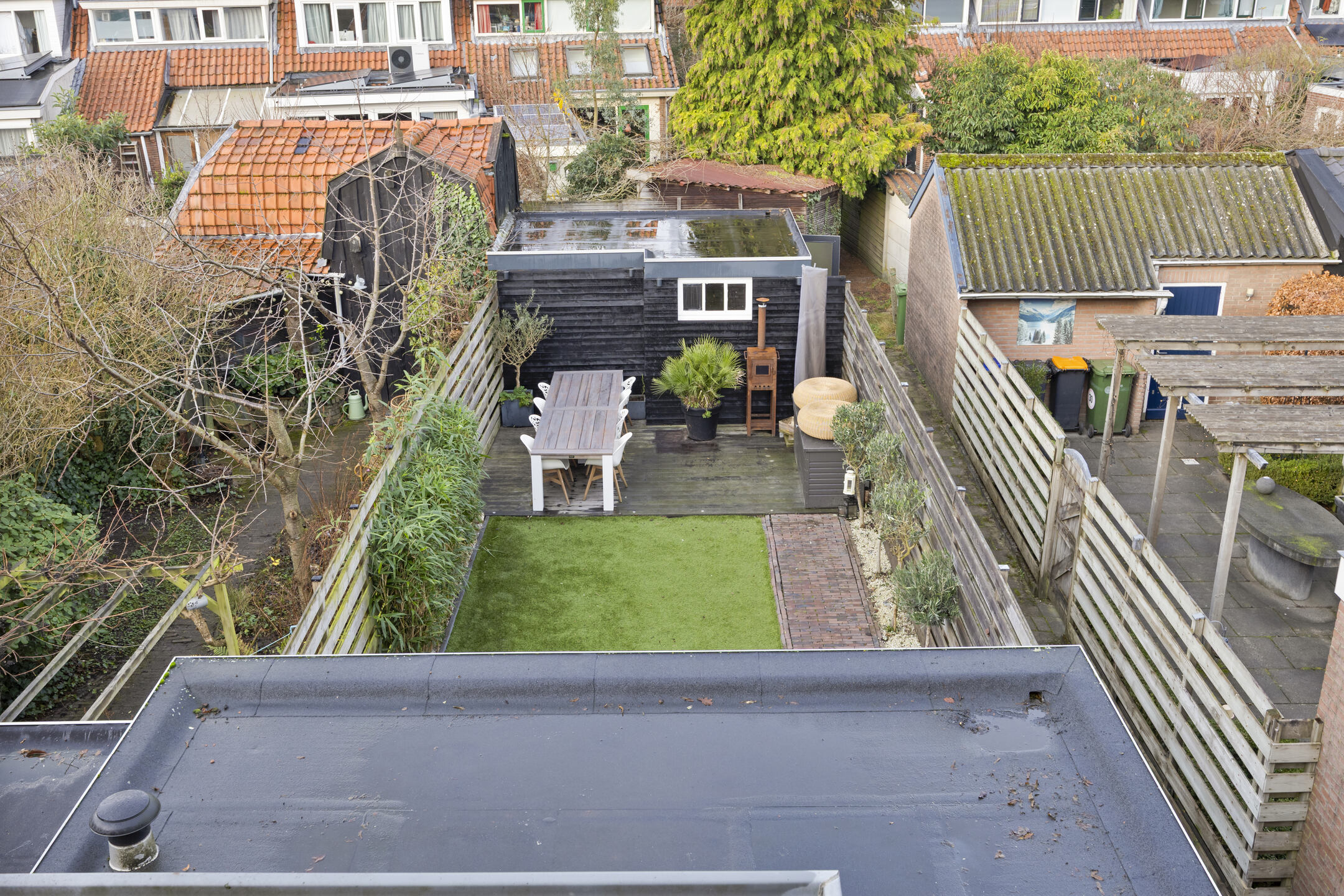 De diepe en gunstig gelegen achtertuin biedt dankzij zijn royale afmetingen volop ruimte voor meerdere terrassen, een speelplek of een comfortabele loungehoek.