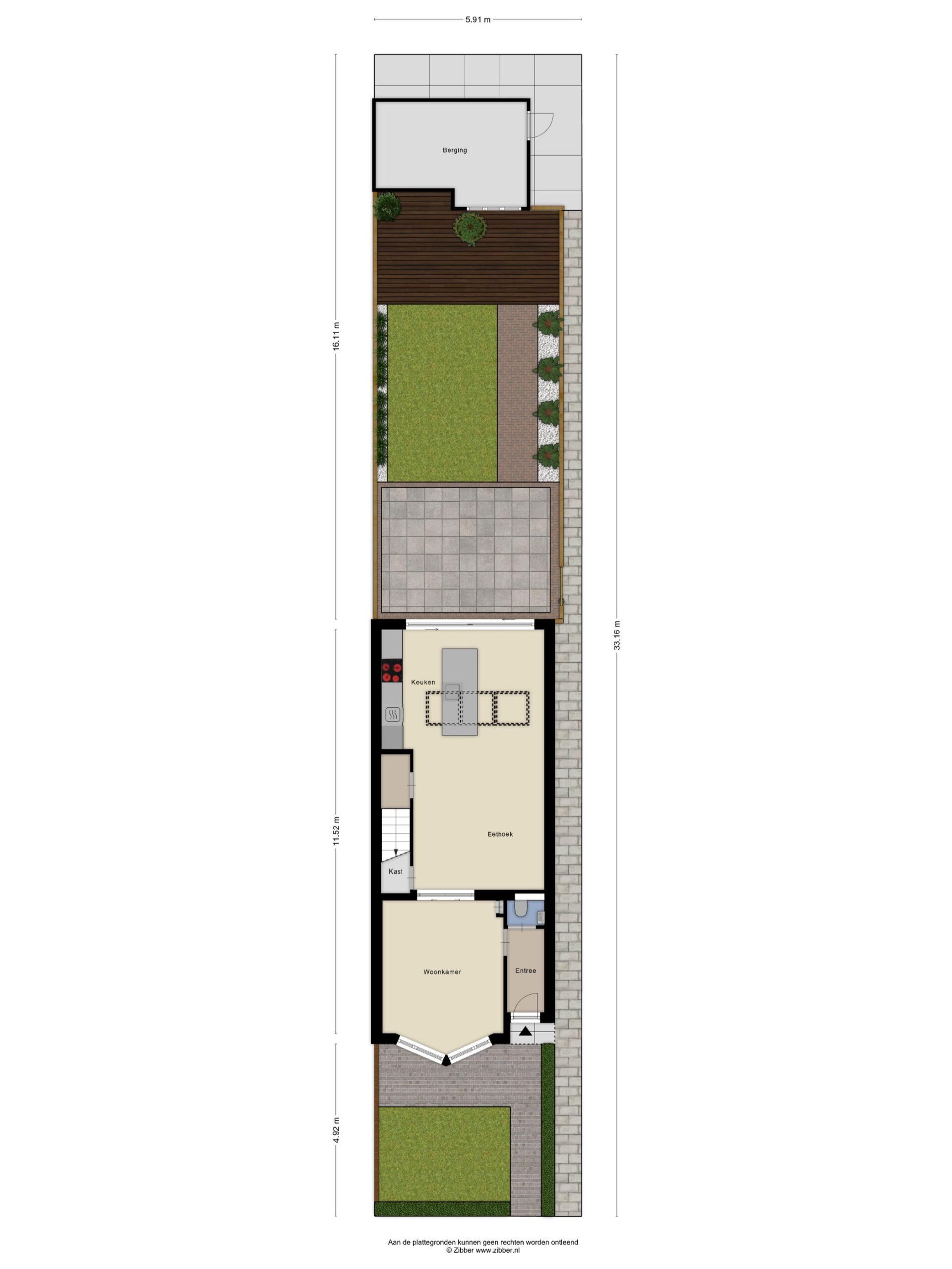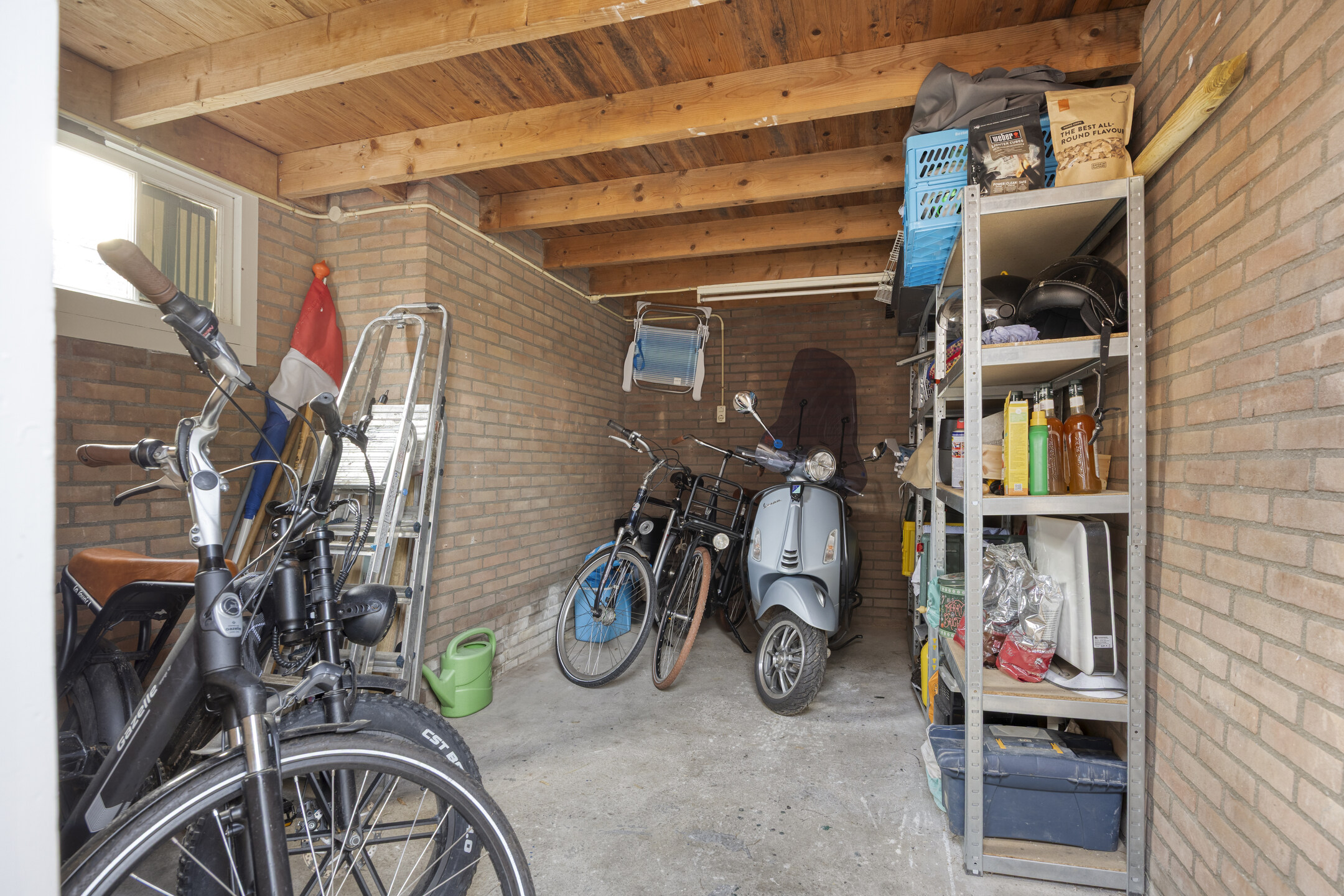 Achter in de tuin staat een vrijstaande berging van circa 12 m², ideaal voor fietsen, tuingereedschap en extra opslag, welke bereikbaar is middels de steeg (recht van overpad).