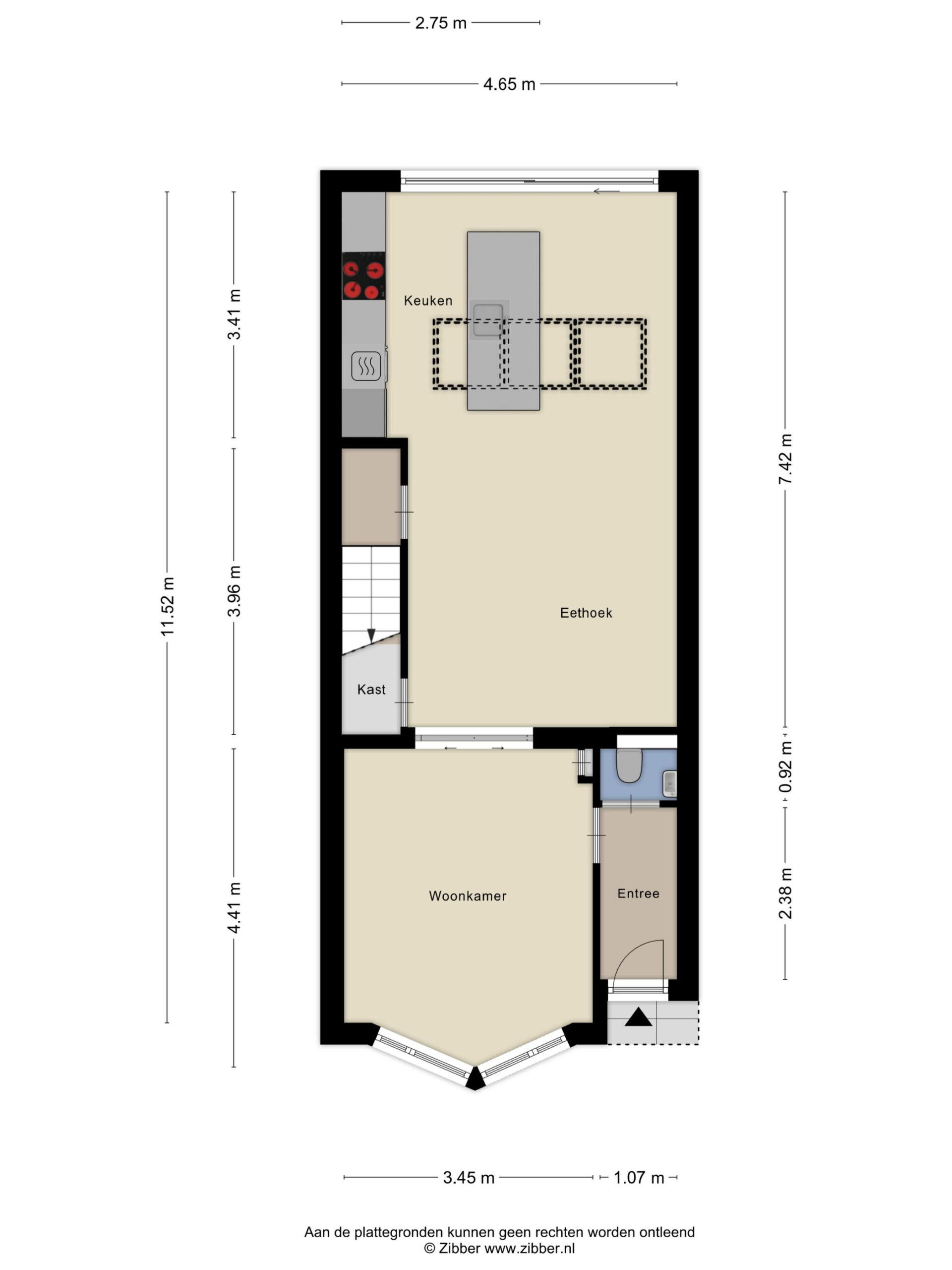 De woonoppervlakte bedraagt circa 99 m², dit is inclusief de zolder (waarvan 11 m² welke als overige inpandig in het meetrapport staat) en heeft een stahoogte tussen de 1,90 en 2,10 m.