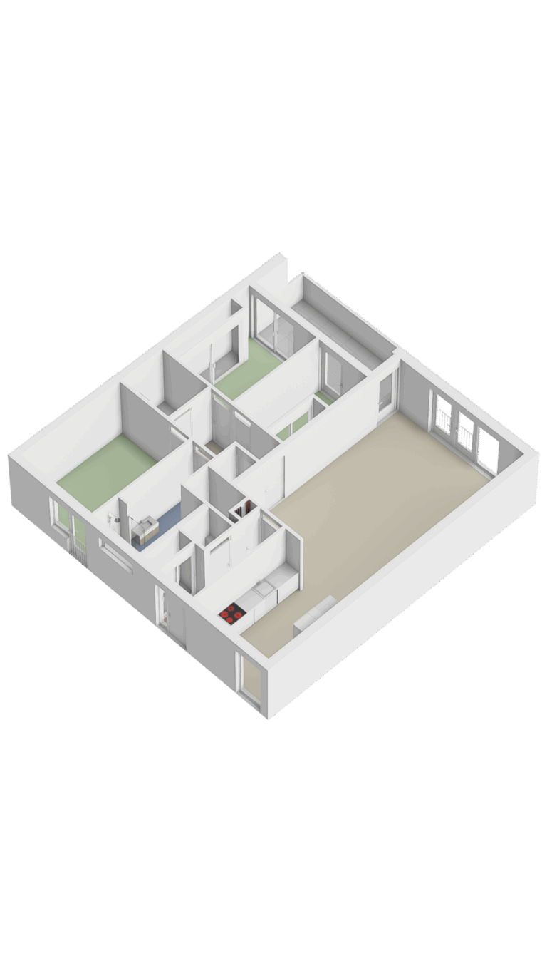 Dit moderne appartement biedt een royale woonkamer, een moderne keuken, drie slaapkamers, een mooie badkamer, een heerlijk balkon én een eigen parkeerplaats in de parkeergarage.