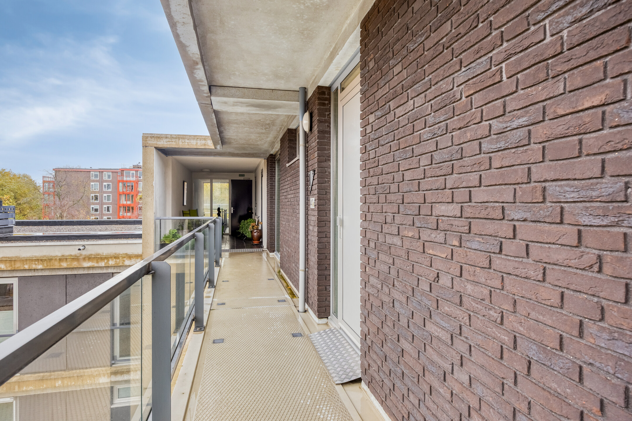 Het balkon is circa 12 m² groot en biedt een vrij uitzicht over de omgeving en is voorzien van een zonnescherm.