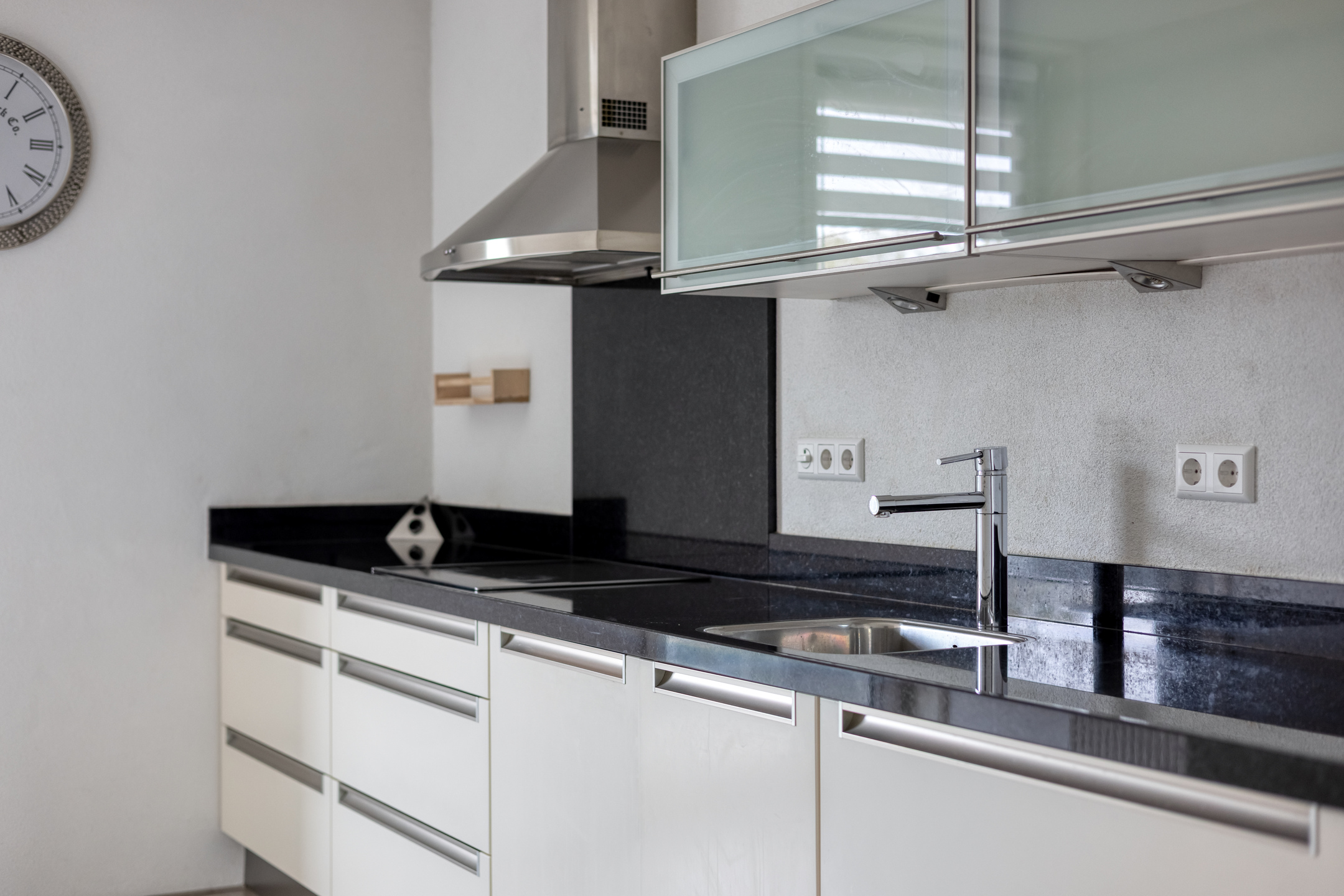 Deze is compleet uitgevoerd met onder andere een inductiekookplaat, combimagnetron, afzuigkap, koelkast, vrieskast en voldoende kastruimte. Een praktische en prettige plek voor iedereen die graag kookt.