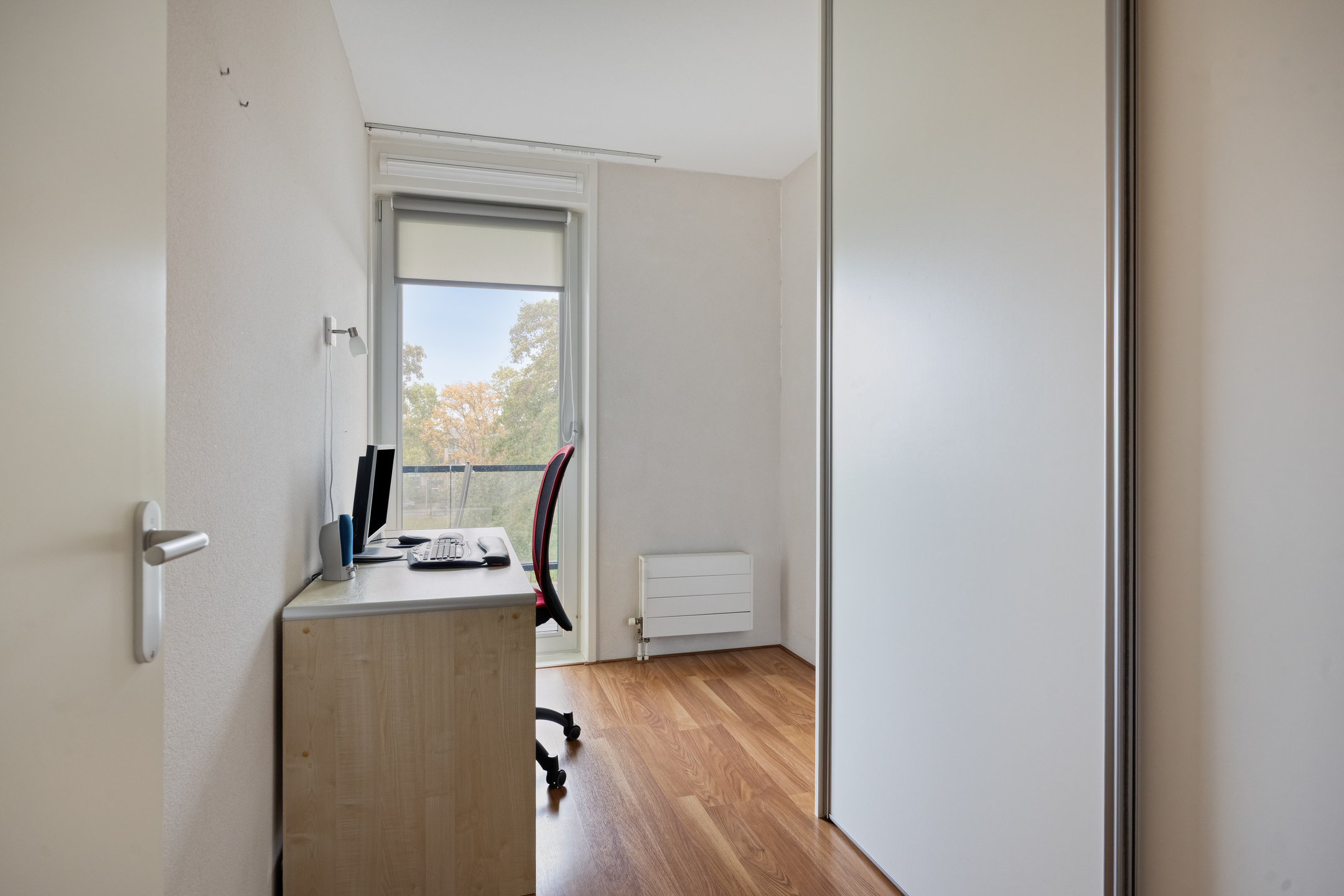 De derde slaapkamer van circa 13.5 m², aan de galerijzijde, is ideaal als hoofdslaapkamer, werkkamer of logeerkamer.