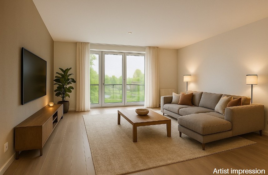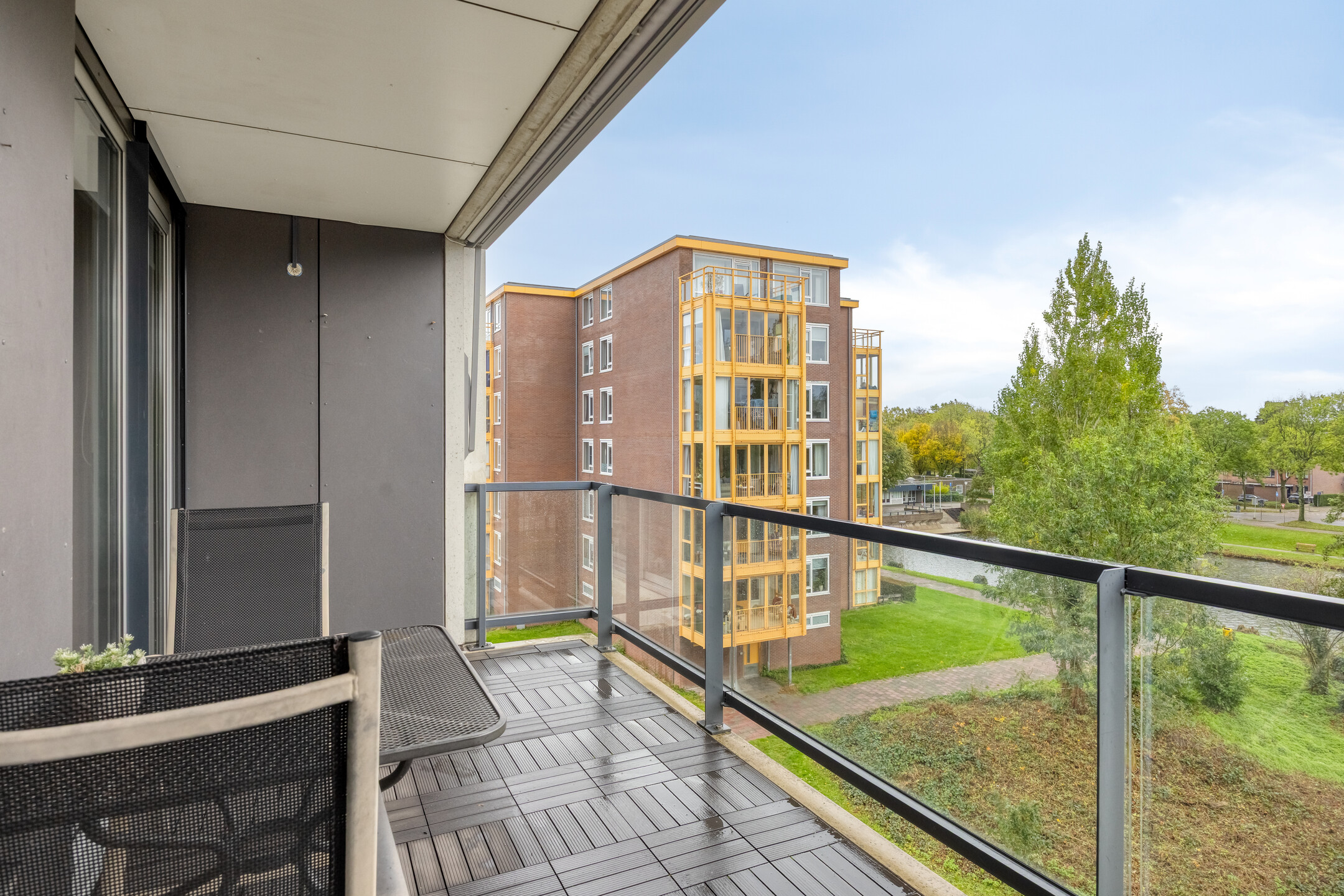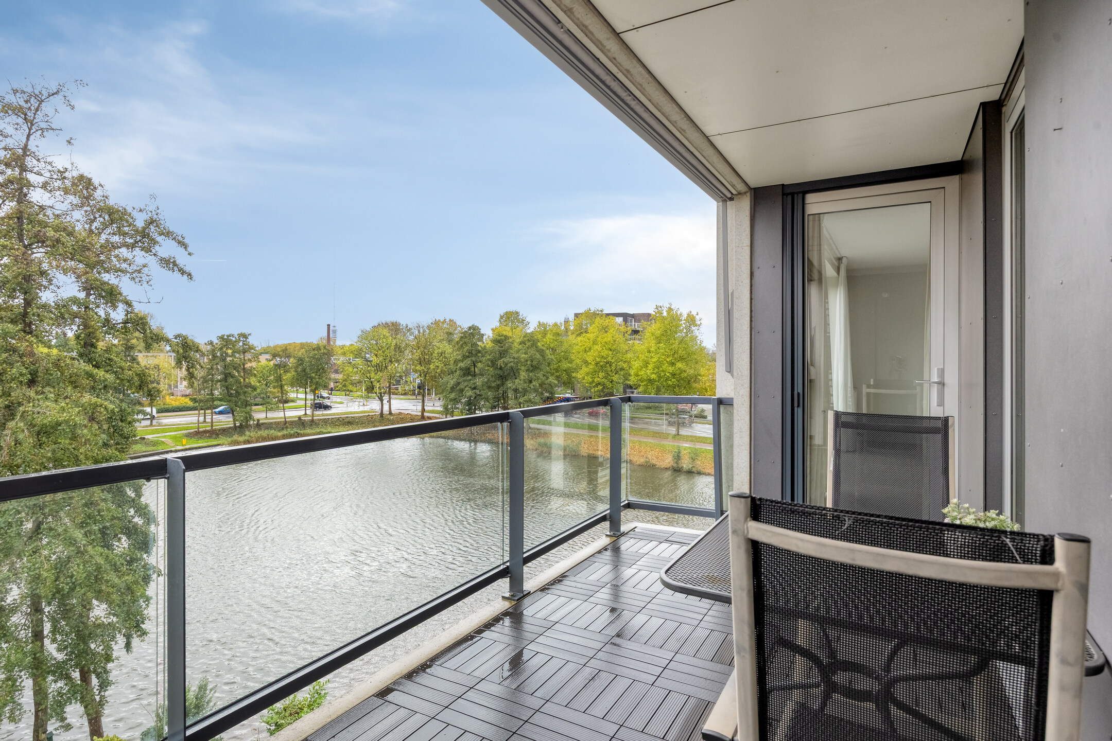Vanuit de woonkamer en vanaf het balkon is er een fraai uitzicht over de vijver. Een ideale plek voor wie comfortabel wil wonen met alle voorzieningen dichtbij.