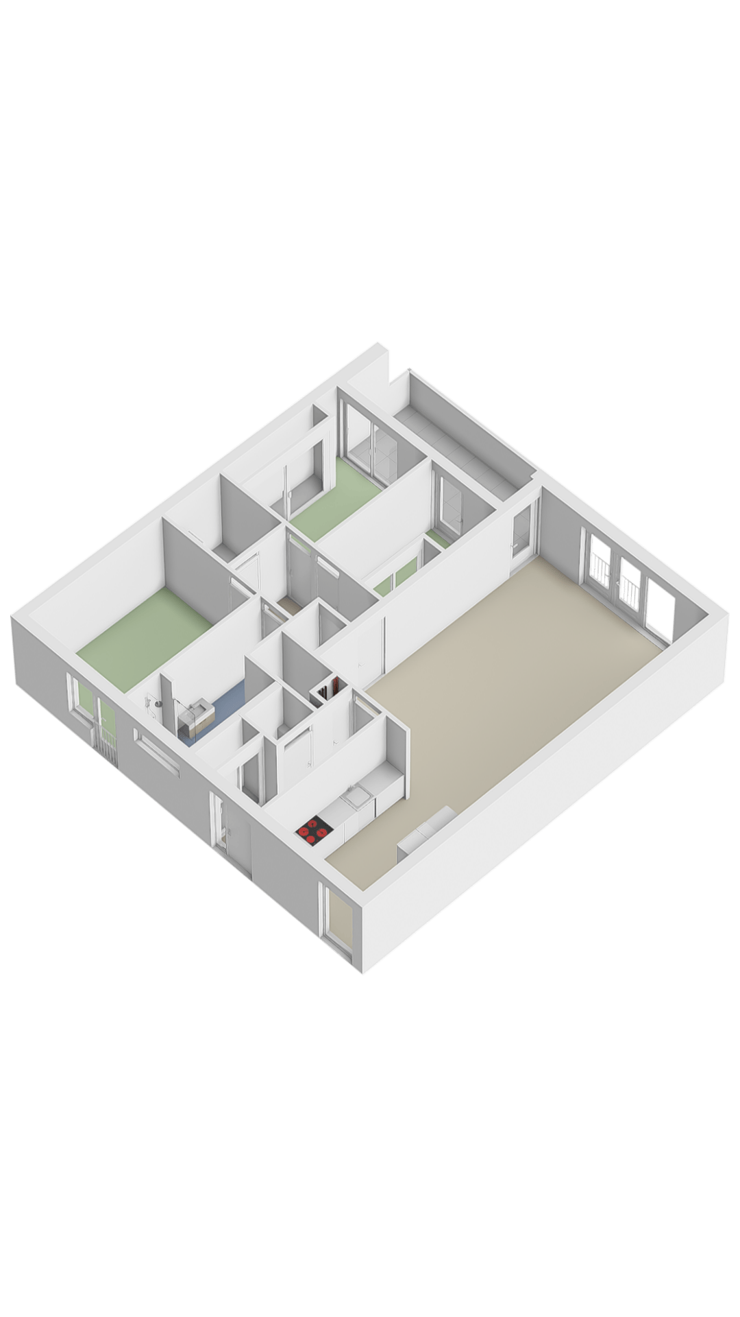 Dit moderne appartement biedt een royale woonkamer, een moderne keuken, drie slaapkamers, een mooie badkamer, een heerlijk balkon én een eigen parkeerplaats in de parkeergarage.