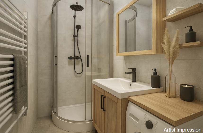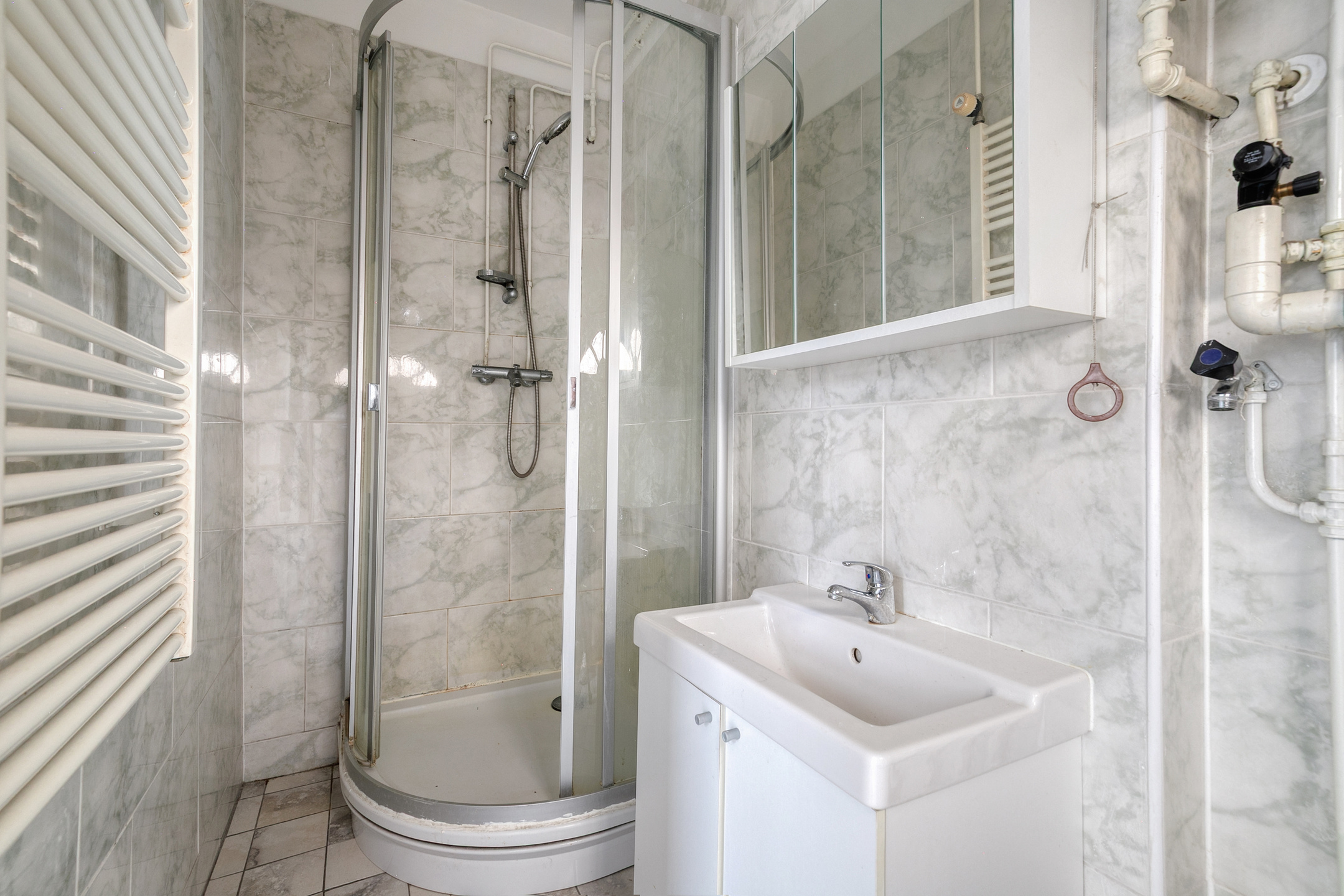 Ook is er vanuit hier toegang tot de badkamer voorzien van douche gelegenheid. Wastafel en aansluiting voor de wasmachine. Je hebt vanuit de badkamer toegang tot een klein balkon.