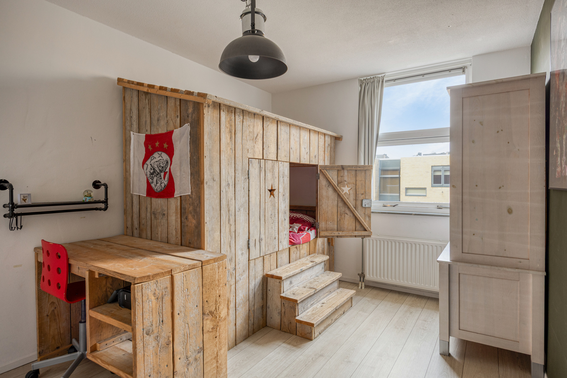 De tweede verdieping vormt een verrassende comfortabele woonlaag.