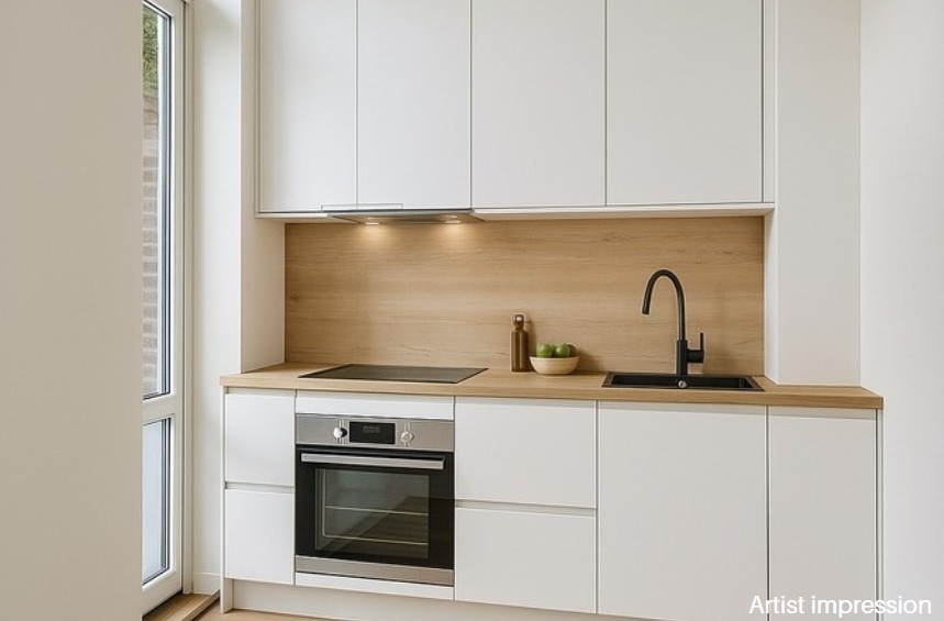 De keuken is nog vrij in te delen — een bewuste keuze, want een keuken is vaak een zeer persoonlijke smaak en, laten we eerlijk zijn, ook het leukste onderdeel om zelf uit te kiezen, toch?